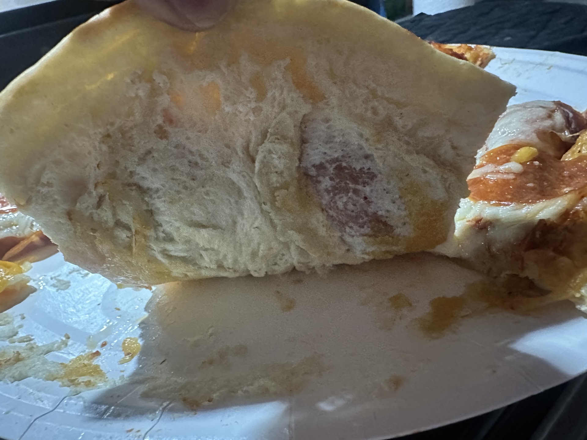 I asked where the rest of my order was. He pointed. The cheesy bread is apparently kept in a cooler. Across the room.