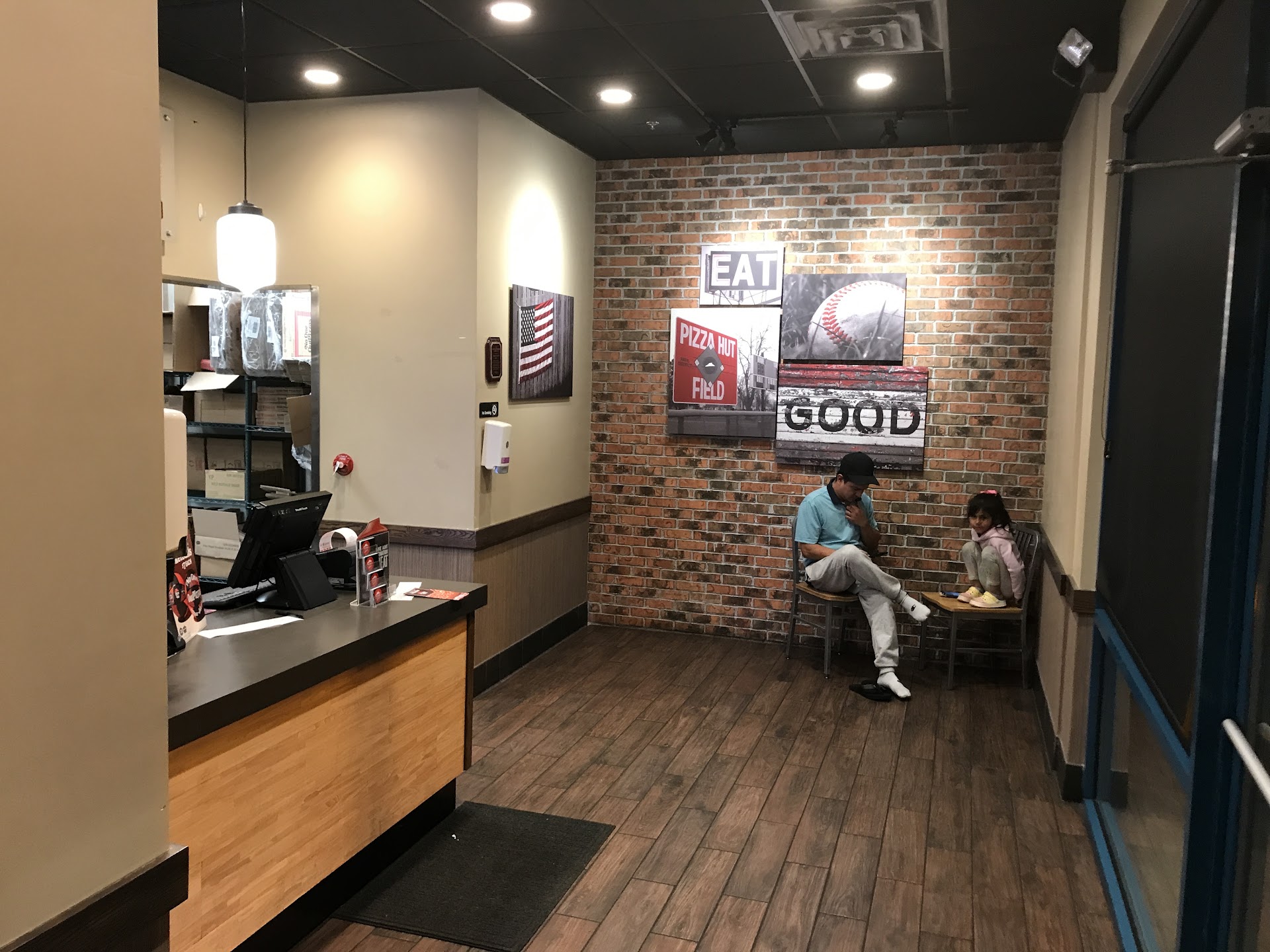 Read moreExtremely pleased with the customer service! We originally walked into a pizza buffet down the street and after a quick glance at the pizzas they had on display, turned around and walked out. Went down the street a little further and decided to try pizza hut. We ordered pizza and wings and the wings were brought out quickly and very tasty. A few minutes later the pizza came out and as the young lady placed the pizza on our table, she noticed one of the ingredients wasn't right and offered to bring us another one for free. To be honest, I probably wouldn't have even noticed if she hadn't pointed it out. I didn't want them to go through the trouble of making another pizza for us especially since we were the only ones in the store, so they discounted the pizza and we left very happy. The wings and pizza were both delicious and far better than I was expecting. We'll be going here for our pizzas...