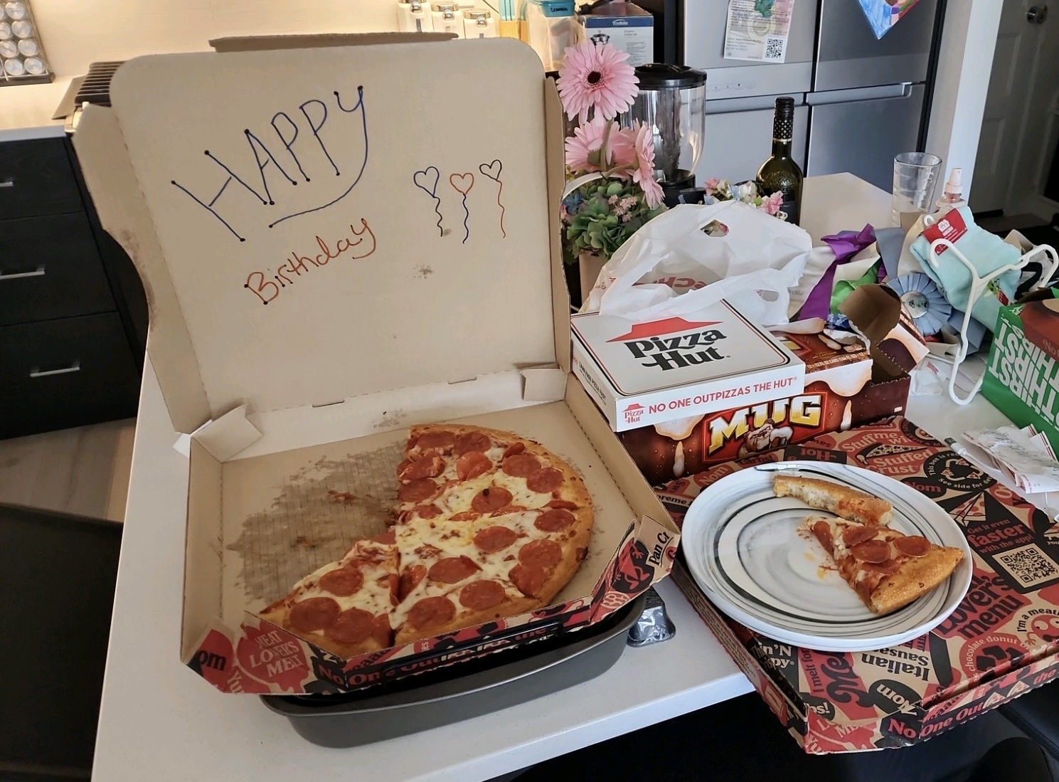 Read moreI don't order here that often and a recent order reminded me of exactly why... Points expire after 6 months. So, if you like to order "once in a while" - they'll probably be expired. This is all about trying to make you order more often, probably. But it really is just annoying. Their prices aren't really competitive. I paid $40 for 2 mediums and some cheese sticks. This also included using a "deal". So, it would have been even more pricey without the deal. Checking a couple of other places, it seems I can get a similar order, except large pizzas, for the same price. One was also via a deal and the other was just by picking their cheaper predefined options. Their website design is junk or they just link to penny-pinch their customers. The deal I used was 2 medium specialties or 5-topping pizzas for $19.99. However, if you try to order a 2-topping specialty and add a topping to this, the system charges you extra. Why? This is still under the 5 toppings. Why can't extra cheese count as part of those 5 toppings, either? They charge you $4.50 for delivery...and they don't even deliver it themselves anymore (Doordash does). Along with delivery fee is the tip... And then Doordash doesn't even bother to read their delivery instructions. The pizza itself didn't even taste that great. In addition to that, my order wasn't even done correctly. My margherita was missing the basil/pesto part of it. So, I basically got a tomato and cheese pizza. Well, along with some garlic. The cheese sticks come with this little sample sized sauce. As a comparison, the sauce you get with Lil Caesar's sticks is vastly larger. Just seems like more penny-pinching. But at least they are still giving you real pizza sauce instead of some prepackaged stuff with a peel-off lid like you'd get at some fast food place. It seemed like Pizza Hut was more of a premium place at one time, perhaps, a long time ago. Maybe the premium is just...