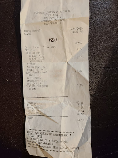 Read moreMy experience was just not pleasant at all. I ordered some tenders and 2 different desserts. They said it'll be 5 minutes on the dessert. Ok, get to the window, pay, they give me a bag. Look in the box. Chicken wings, biscuit, and dirty rice. I told her again what I ordered she ask me to pull up they'll bring it out, I'm waiting and waiting, the girl that took the order came out and asks me, again, what I ordered, I say chicken tenders meal w/coke, 2 Oreo dessert and a strawberry biscuit dessert, she go back in so I'm waiting and waiting, until I see they have serviced 3 more vehicles, so I go in and they tell me I didn't pay for the Oreo cookie dessert. A lady came, I guess, she was a manager. She was very nice, but, she said can I give you an extra strawberry biscuit for my wait and it will be 3 1/2 mins. Not the Oreo dessert. This was 9 o'clock at night. I was so distraught about the whole situation and the girl that took my order didn't say she didn't here the Oreo dessert, she said I didn't pay for it. Well, I didn't know I wasn't charged because you did not repeat the order, you just said $12.84. I hope that it would be handled better in the future. I plan to never go back. The treatment of the girl that took the order was very unkind and unprofessional....