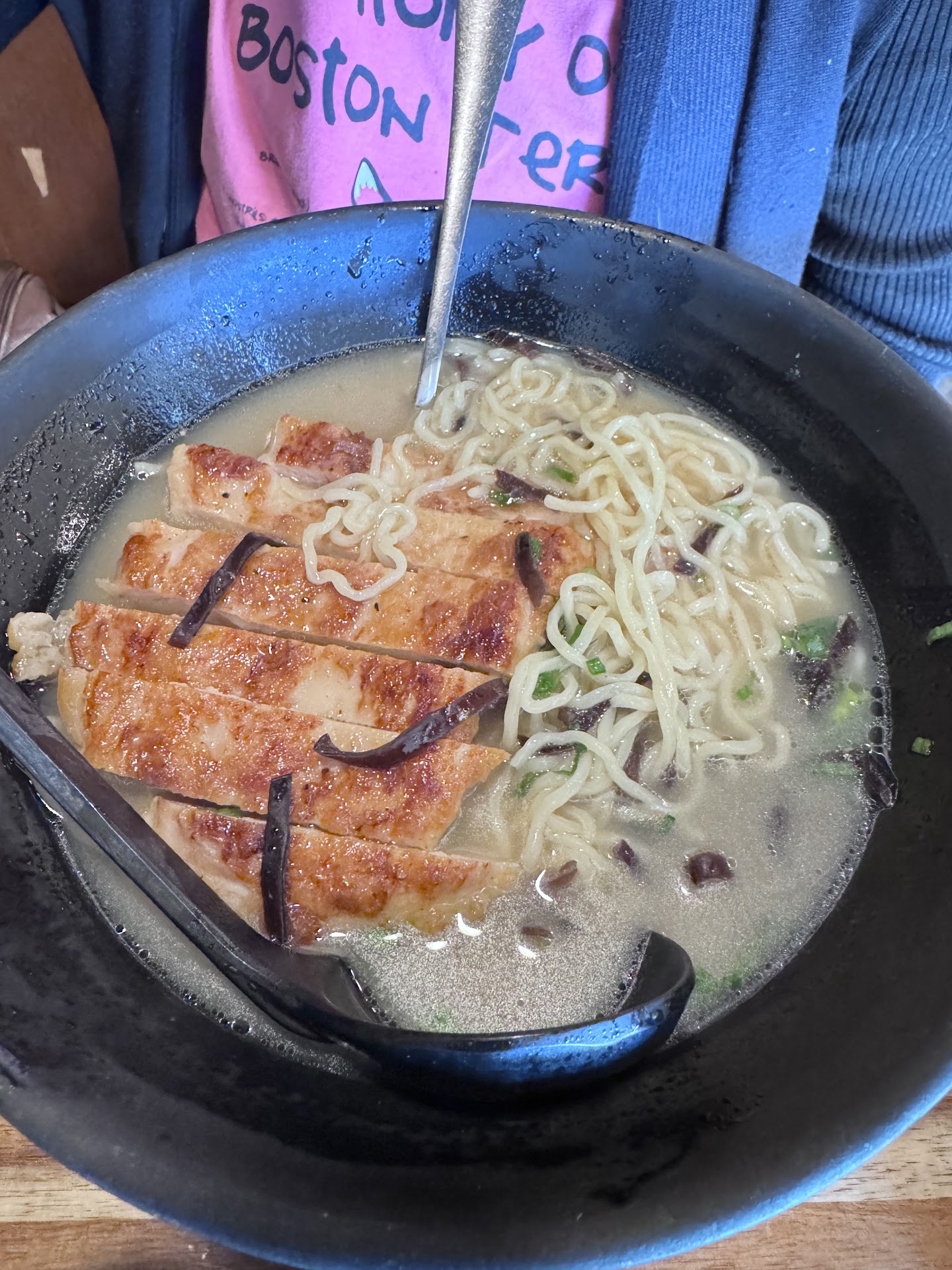 Read moreAte here for the first time last night and it was so good, super spicy though! I did get the spicy miso ramen though so understandable for sure, I like spicy but the spicy miso is the type of spicy that makes the tip of your tongue and lips burn! Was still really good, I got the spicy miso ramen without the egg, seaweed, and mushrooms and with the pork belly, green onions, and mixed vegetables, I wasn't a huge fan of the pork belly chasu it has alot of fat, it was good but not to my liking, alot of people like it though because the fat adds alot of flavor so understandable as well, my boyfriend got china grand buffet for dinner, one of the things he got was sweet pork or sweet barbecued pork and i added a few pieces of that to my ramen and it was SO SO SO good, if you ever get the spicy miso ramen from this place, and you happen to be heading towards or past or by the china grand buffet on Fairview, stop and get some of the sweet pork and add it to your ramen, you WILL NOT be disappointed!!! Also got the boba tea iced, it was alright, I liked the tea but the boba was super chewy and hard in the middle, also kept clogging the straw, the lady that took my order and the lady that handed me my order were both super nice 👍🏼, if you have a to go order they hand you it in recycled boxes, or like instead of throwing the boxes they get the produce in away they use them for to go orders, actually a...