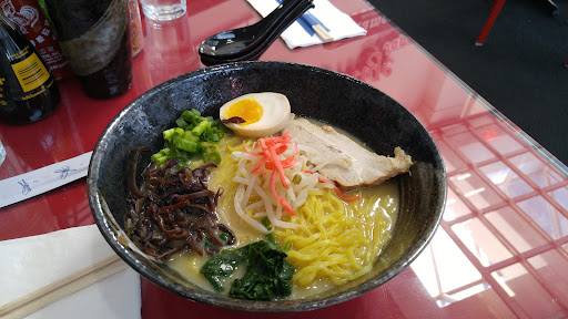 Ramen sho could be good but needs some improvement. Looking at the few pictures others have posted, I suspect my wife and I may gave been shorted as they may have been running low on food (we showed up around 6 pm and they ran out about an hour later). The first thing I noticed is they don't have shichimi togarashi, a spice mix, which is odd as it's a ramen shop staple. That's like ramen 101, folks. We checked out the menu but about half of it was taped over, presumably due to them being out. I'm accustomed to being able to choose my own ramen adventure, selecting a broth base with noodles and then add-ons, but there was no such option. Part of the fun for me is customizing my ramen (corn, pork, seaweed, naruto, even butter!) so that was a bummer. I ordered tonkotsu ramen, my wife miso.