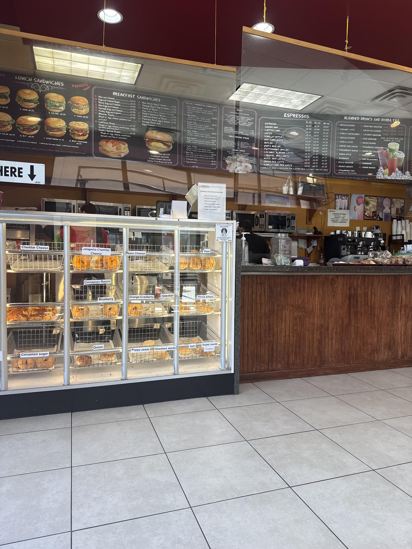 As good as the sammys were, I just can't get over the rude staff and my hard boba pearls. For me, I rate on the whole experience and I just can't go higher than a 2. Communication with your customers is so important and clearly this joint lacks it. So basic but not given here. I'll stick to the downtown location for my future Sarah's bagel visits from now on. I want to enjoy my food that's prepared by...