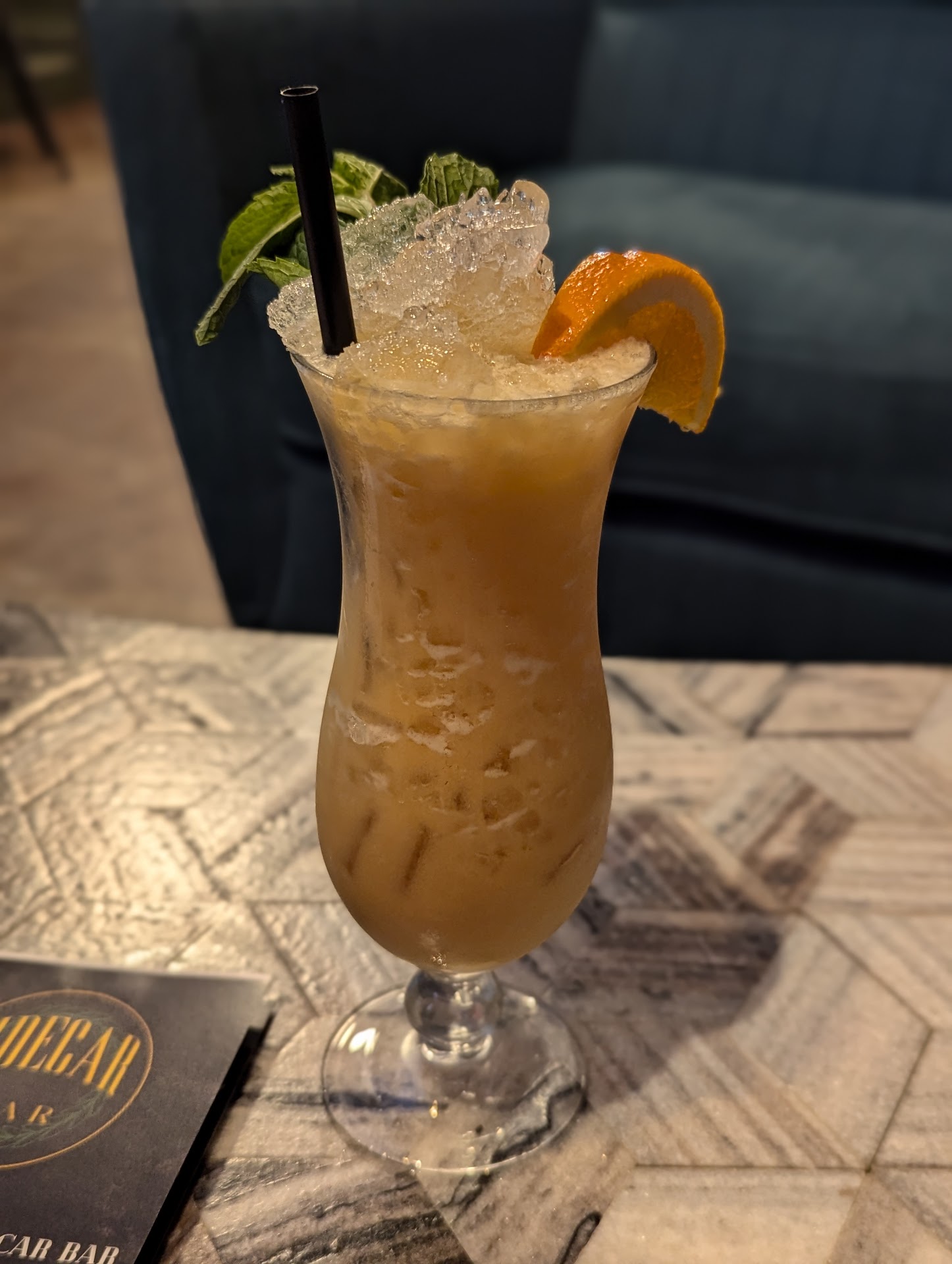 Read moreWe have been here twice so far and loved it each time. This drink is the "Brancolada" and it was divine. The bartender/owner was super nice, very agreeable and pleasant. She was explaining developing the one seasonal recipe and making homemade hibiscus tea for it. I love the extra effort and passion! We ordered the shrimp appetizer, and it was fabulous. I don't like cocktail sauce but this tasted homemade and it was so good! The shrimp was tender and perfectly battered. My bf got the Whiskey Brimstone seasonal drink and I don't even enjoy mezcal, but it was a genuinely great drink also. Highly recommend trying this out. Grant's is amazing, and so...