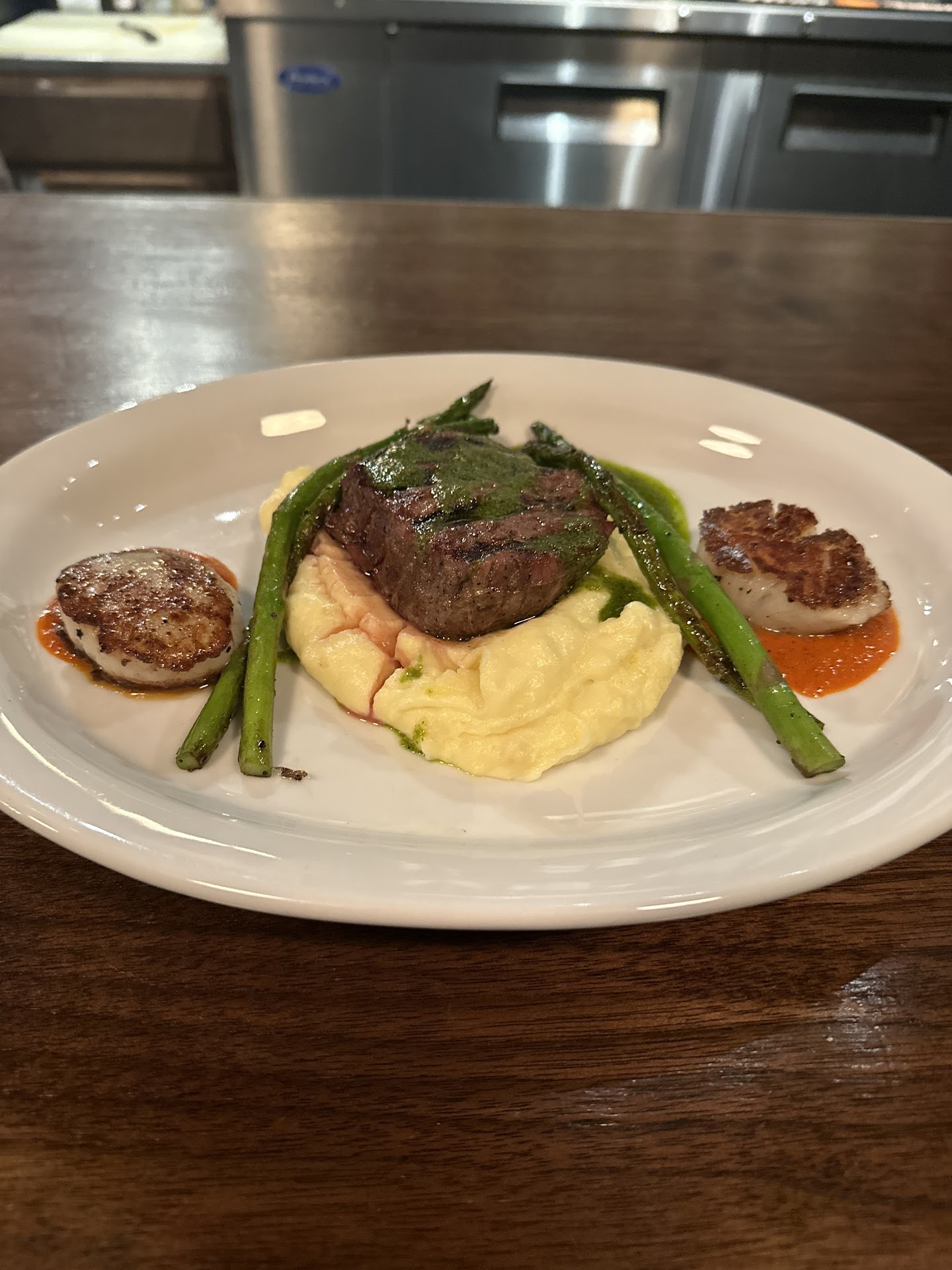 Had Valentine’s dinner solo and Grants Side Car did not disappoint. The Surf n Turf was probably one of the best experience for my tastebuds. The scallops were moist, soft in a great sauce. I’m used to scallops being hard and dry but these were something else. The steak was nice and rare with a somewhat spicy green sauce that complimented it greatly. And the mash potatoes had my eyes rolling in the back of my head. Everything worked well together. And to top it off, Isaac made a great Old Fashioned to end my night. His is almost as good as Ness’ Old Fashion.