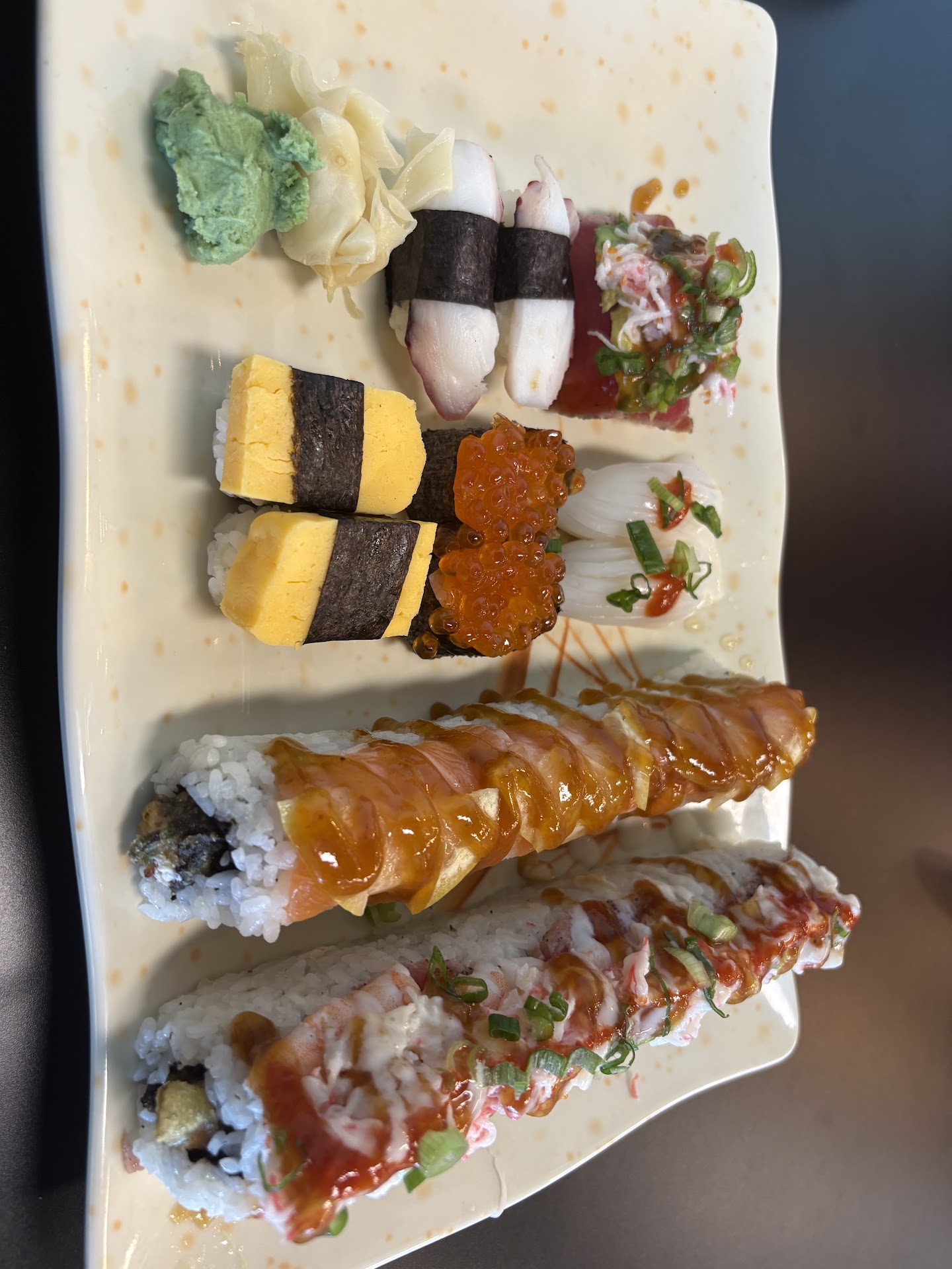 Read moreThis sushi place is one of the best there is and never disappoints! It is all five star! Why 4 stars? The ADA parking is inconsiderate. It is in the back of the building and quite a distance from the door. As if everyone can walk that far. It disgusts me being a new building. Who is planning these complexes anyway? Not people that live with mobility challenges. The front parking is smooth and there are no curbs, but there are only a few spots. Not too...
