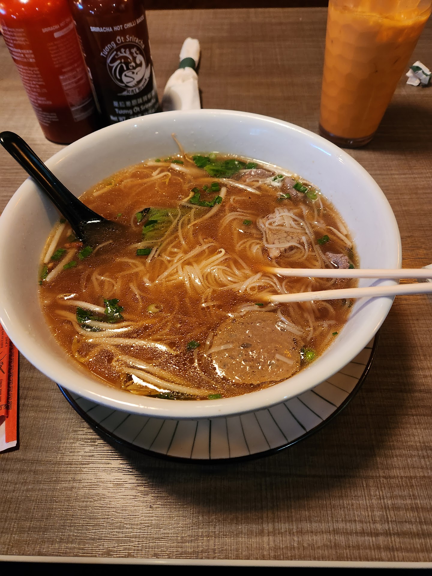 Read moreSo im here coming from California on a work related trip. So this review is in comparison to Cali grade food. Food is 4 out of 5 stars. I was hesitant to try this spot but I didn't want fast food or Denny's type food. Also I'm just a big food snob cause I'm spoiled to Cali grade food. I was very surprised to see Vietnamese Pho in a Thai restaurant ( yes I'm Vietnamese and make my own Pho so the bar is set high) I was surprisingly pleased with this beef Pho. Good depth of flavor (personally would let the broth cook longer for even more depth of flavor but im happy with it especially coming from a non-vietnamese restaurant in Idaho. Only other thing I would of liked to see in this Pho is more quantity as well as more variety of the beef cuts. This Pho had the bare minimum variety of beef cuts. Just had rare beef slices, beef meat balls and brisket slices. I would give 5 stars for food if I saw beef tendons and beef marrow (but these are usually in really authentic pho). My co-worker ordered the chicken drunken noodles medium spice level (even though I recommend the get mild spice and add more spice to his liking..he didn't listen..hahaha) and he definitely didn't have a stuffy nose after half way through. I stole a few bites and again 4 out of 5 for the drunken noodles. I would of just preferred a bit more sauce added durring the cooking process, noodles were a bit dry but flavor was very good. Final thoughts...would give 5 stars for food, but I'm just picky and a California food snob. Great friendly and...