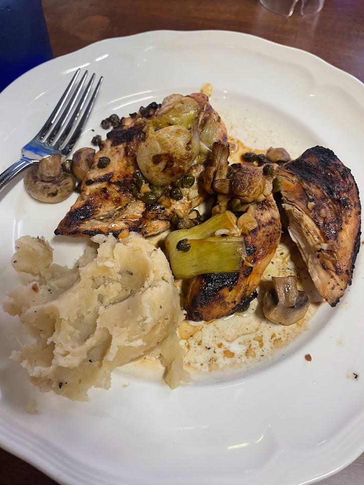 Our food arrives after 110 mins of waiting, no music, barely any drinks. She drops our 3 plates and runs before we can even look down-Oh no- no silverware. we finally have food, but no way to even take a bite. We try and try to get someone to hear us in the rumble of people talking about their dissatisfaction. finally- after 10 mins we have a fork and napkin! Needless to say- we were picking at the food right away as we were starving. Here's our assessment. I got the Chicken Scallopini- I got burnt, cold, overcooked chicken, with no sauce, covered in cold mushrooms, and an ice cream scoop of mashed potatoes that tasted like cement. My husband got the Shrimp scampi- note they came out an hr earlier and said they were out of the noodles and it would be cavatappi instead, in an almost kid size bowl, dry as could be and zero flavor. My friend, who got comped steak, said half of the steak was medium well and the other half was rare w/no season or flavored.