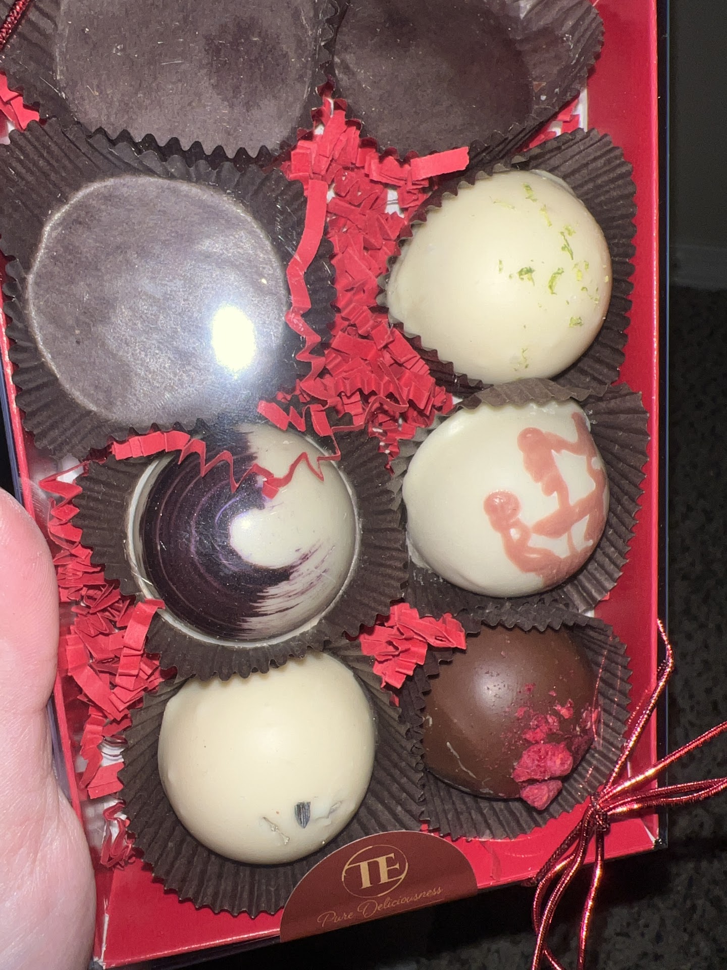 Bought a bunch of stuff for Mother's Day, both my wife and my Mother In-law were temporarily lulled from the frenzy of the holiday by the well made and delicious confections! Real godsend for me, cause it made them a lot easier to hit with blow darts and hogtie before throwin' em in the back of the truck. I mean, maybe y'all can dart a wife and Mother In-law when they're at full speed in a tall grass field but, let's face it, I'm getting older and I'm not as spry as I used to be. That's neither here nor there, the real point of this review is that the chocolates were excellent and made with local love and ingredients! Will definitely be going back.