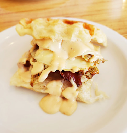 I have not tried any of their savory waffles yet. They are made with a croissant batter. The descriptions and photos do look tasty. They offer both breakfast and lunch style options.