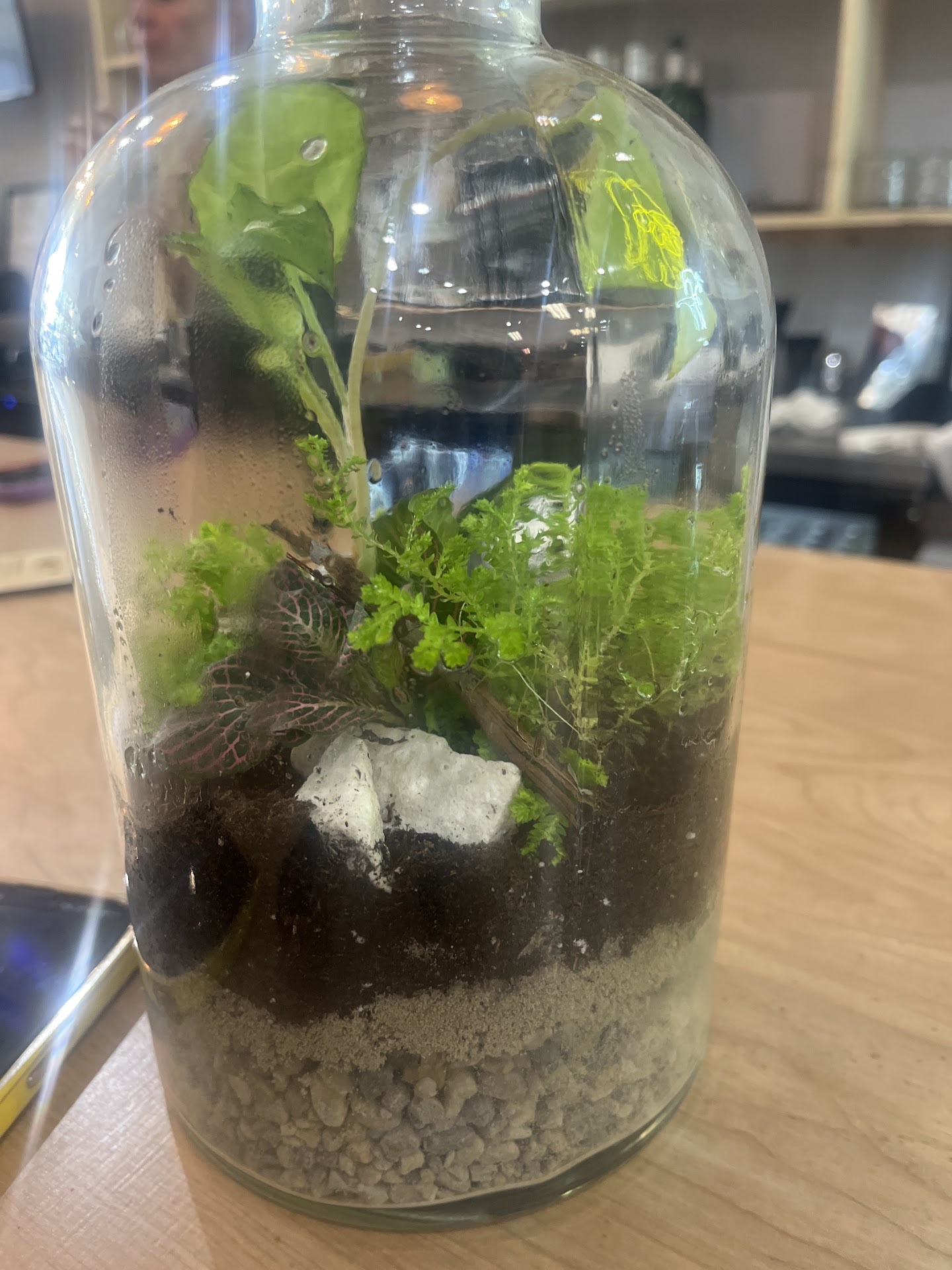 I’ll be sharing photos from the day of our visit, as well as an update on my terrarium - it’s still thriving! I can confidently say I got my money’s worth. This is the perfect spot for a date night, girls’ night out, mother-daughter bonding, or any gathering with like-minded people. Plus, they serve wine and other spirits, adding to the fun atmosphere.