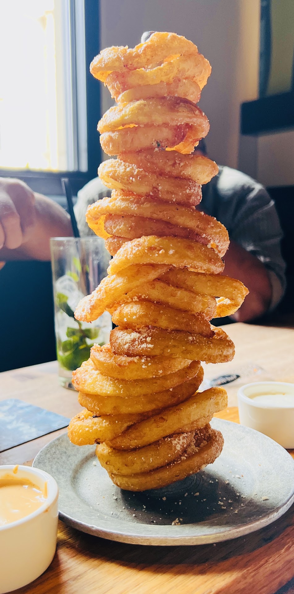 Service was great, the waitress was attentive and understanding, and saw that we had a problem with the table, but sadly We would have had to return to the queue and wait more for another table, which after an hour, I did not have the patience for and would have just left at that point.. The waitress did talk with manager and gave us a free appetizer on the house for it, which was nice, but again, just remove the table.