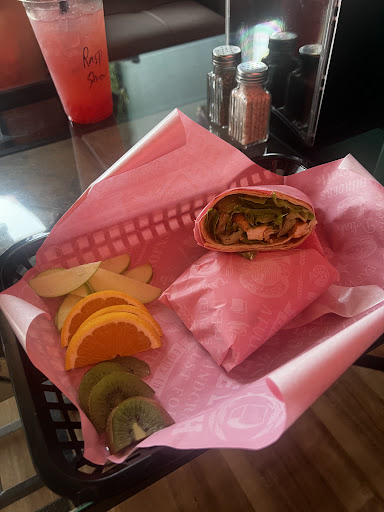 Ordered 2 drinks, a wrap and a panini at 12:45. 1 drink came out quickly, after 10ish minutes we asked about the second drink which was then made pretty quickly. It was fairly busy and the place is new, so we waited another 45 minutes for our food to come out before we asked about it. They had not started making it yet. The girls asked twice what our order was before we finally got our food, to go, at 1:55. No apologies we're made about it taking so long. And, after leaving, found the wrap was made with the wrong tortilla, had neither pico nor cilantro, both of which were listed...