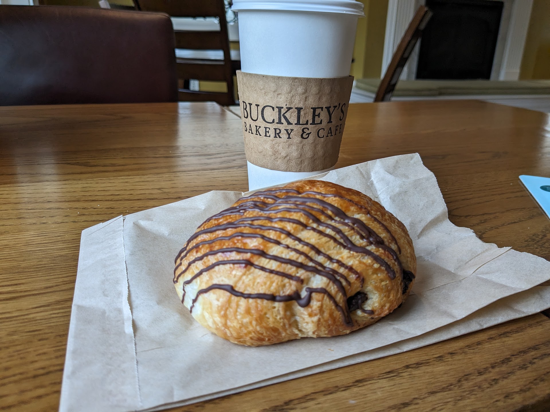 Read moreI am a repeat customer at Buckley's as I work about 5 minutes away. The iced tea is always perfect (strong without being too strong) and always tastes the same- unlike "chain" places where you're never quite sure what you'll get. I've had they pizza and while a little oily, it tastes great and I would order it again- my 12 year old son agrees and he's not easy to please. I also love their protein bites. My favorite is the Gluten friendly peanut butter protein muffin and the gluten friendly reverse chocolate chip muffin- I just picked up a half dozen to bring on a trip and will do my best not to eat them before we leave. The only tiny "downside" is that ordering is a bit all over the place. I never know quite where to stand or where to go, and feel a little awkward. If I'm waiting I always let people know to go around me and I'm all set/ so they don't have to wait behind me. Thinking there may be a better way to plan that. Overall- the prices may be a bit higher than the norm but I feel it's worth it for the quality, taste, and friendly atmosphere. I like it for it's homey atmosphere and always ...