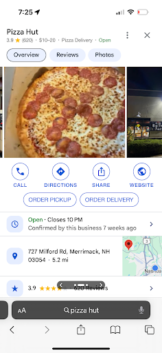 Read moreI work in the local area, so my delivery options are limited. I give a place 5 times before I leave a review usually, good or bad. I gave these guys 7 times over the past few months while working in the area, and they have managed to screw up every single time. They either forget toppings, forget crust choice, delivery doesn't bring an item, or the delivery team manhandles the pizza (like today) and it comes in half folded (I don't order complicated things). They have told me when I place an order online, to make sure I call in and talk to the manager to ensure the pizza is made correctly. I am absolutely astonished that they want me to do their job for them, to make sure they make something correct for their customer. I always tip well even with these mistakes (25%), and maybe that much is my fault. I can assure you this is/was the last time I will order from there, for myself or for my company. This is sad too, because I have always been a huge pizza hut fan, and this store has single handedly removed all of the appeal for...