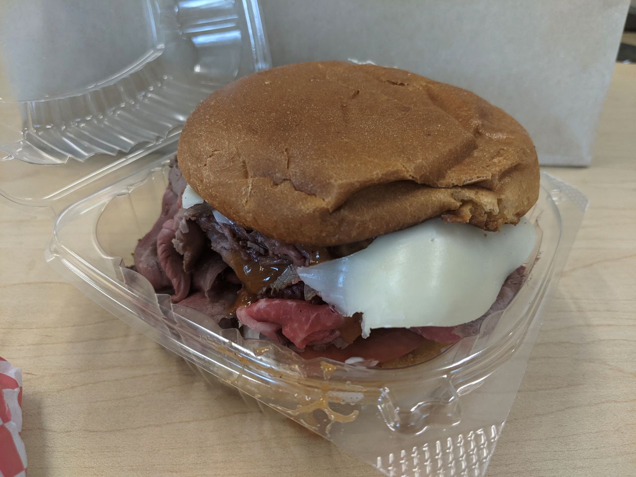 Here are some pics of yesterday's lunch; Super Beef (I dented the top bun, oof!) and a crisp Greek Salad loaded with Feta. Num num num!