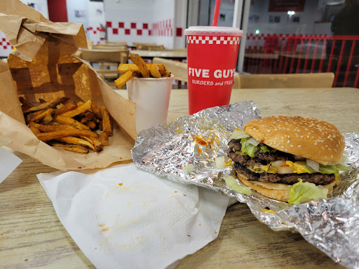 Read moreI’ve gone to 2 five guys this one and another one nearby and I’ve had both their burgers and am disappointed. For a 9 dollar burger I expected to experience a beautiful flavorful burger from perfectly grilled meat but instead I got the TOTAL OPPOSITE. The burger lacks flavor and feels like I’m chewing on rubber, it is for sure one of the WORST burgers I have ever tried in my entire life and all my family members agree. McDonald’s has better tasting burgers for a way cheaper price. After eating the burger I would always get the feeling of the food being stuck in my stomach area as well as the constant urge to throw up, this affected my sleeping especially since I had it after sunset on both occasions. In other words the burger kind of caused me stomach burn on some degree and the only reason I came was because I was dragged here. I give this restaurant 2 stars because the fries are not that bad and the place is pretty clean, other than that I honestly feel like throwing up.