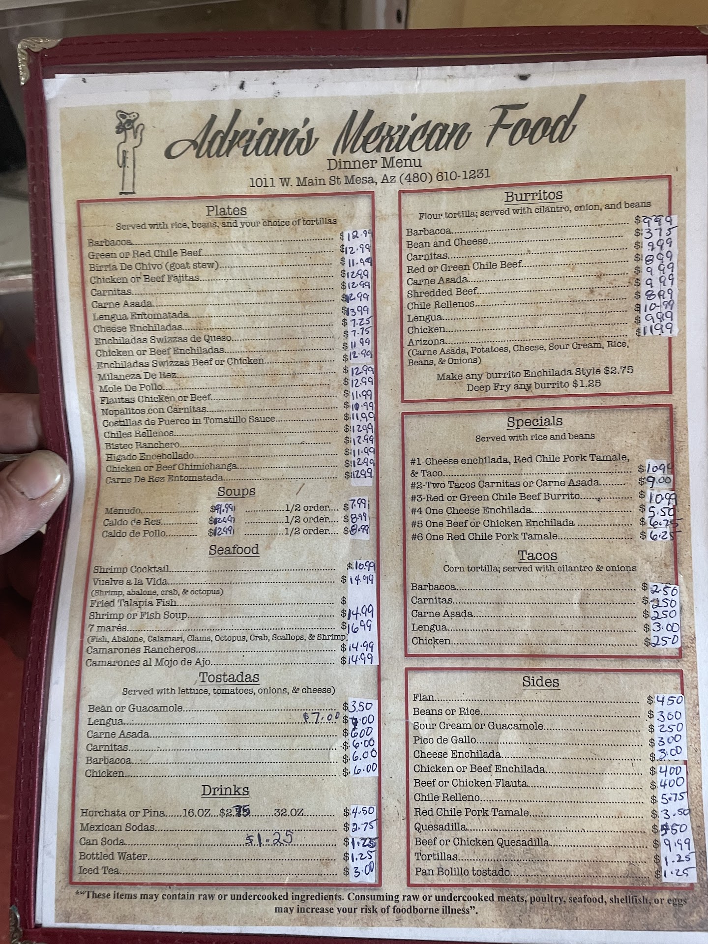 We went there as a family for the first time, based on the very positive reviews that I read online, but were disappointed that everything that we ordered (including drinks) did not even meet our expectations. We ordered Arnold Palmer drink but surprisingly, the guy at the counter (who also is the one who takes orders and seems like the same person who cooks) did not even know what Arnold Palmer is (which by the way something that we always order at Mexican restaurants. The iced tea was watered down, almost tasted like water. You know how most entrees come with beans and rice?? The beans that were served to us were the cheap canned beans that did not even have the texture of refried beans. I would rather buy a canned refried beans at the grocery store and cook it myself. They don't even use the queso fresca but rather have the cheddar cheese as toppings on the tortilla for what we ordered. We will definitely never go back to Adrian's, that was our first and last...