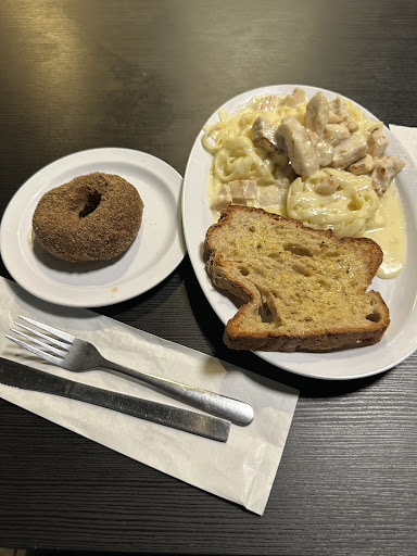 Room for improvement: The tater tots are a bit too salty; you have to play this one carefully because too little and you'll get whiners, too much and you'll get whiners like me :-). The cinnadough bites I personally think should not be on the menu, they're basically just dough with cinnamon on them. The donut was not a good flavor and seemed like it had been sitting since 4 am, I would stop serving these after 12 and throw the rest away if they do indeed sit. The fettucini alfredo is just cream, butter, and gluten free noodles and $12. I would dress these up more and charge $17-18 because at the end of the day, if I'm coming to spend money at your place, it should be something that I can't make at home.