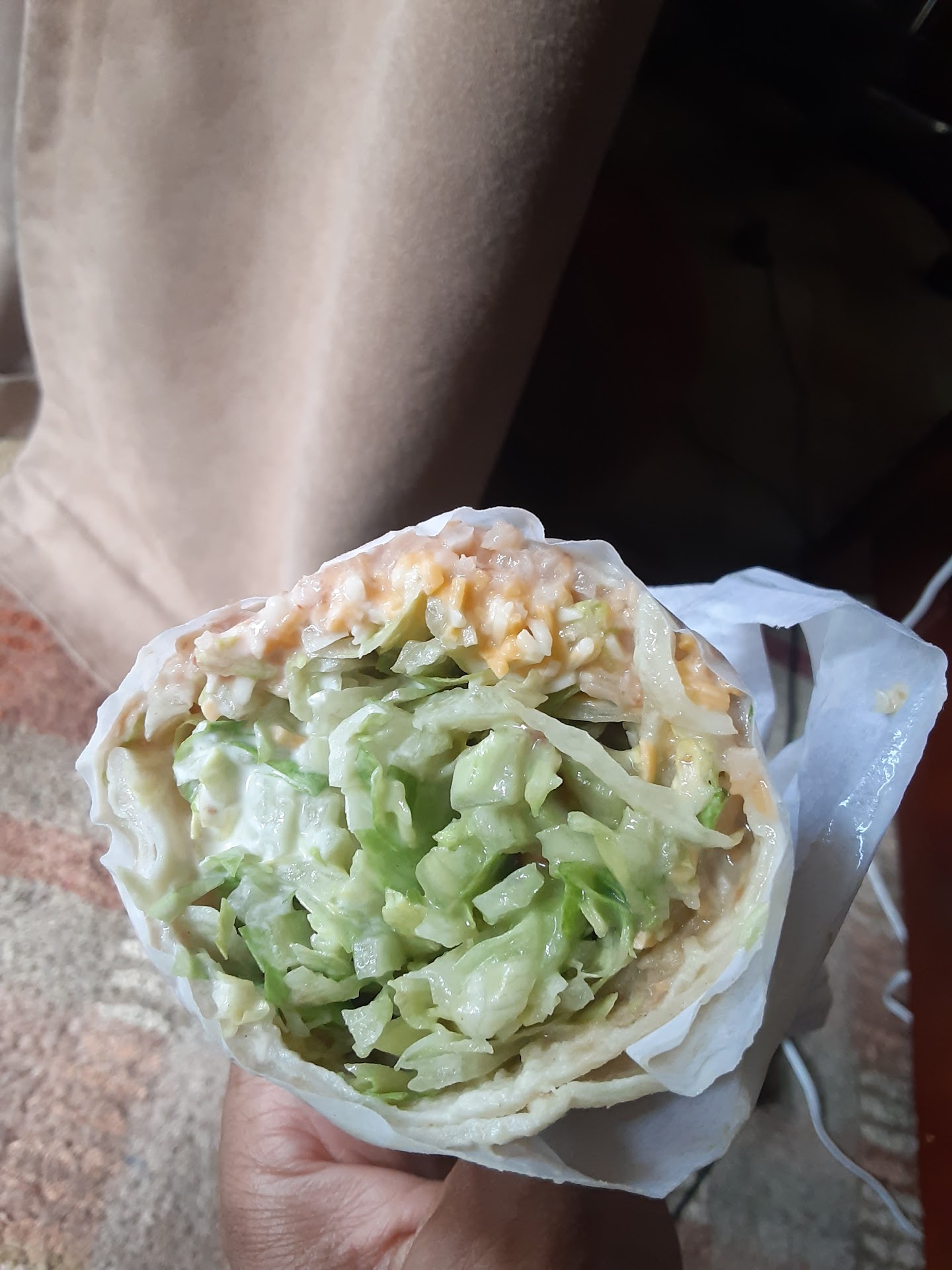 Ā Ā Ā Read moreI'm so sad because I used to love this place- Ordered veggie burritos here for YEARS. As of lately, they CAN NOT get my order right. After being charged twice on previous visits for extra lettuce in which didn't make it on to the burrito, I asked the staff to "please" make sure I got the extra lettuce this time. What I got is what you see the the image...a lettuce burrito. When I returned and showing her the tiny sliver of beans/rice, I requested they remake my burrito with the proper beans/rice/cheese, etc that it would usually have, the young lady at the window looked me right in the eye (with a straight face, lol) and said that the burrito was made properly...offered no resolve. My "paying" for extra lettuce does not mean shorting me of the other ingredients. My last visit to this place...I hope they get their...