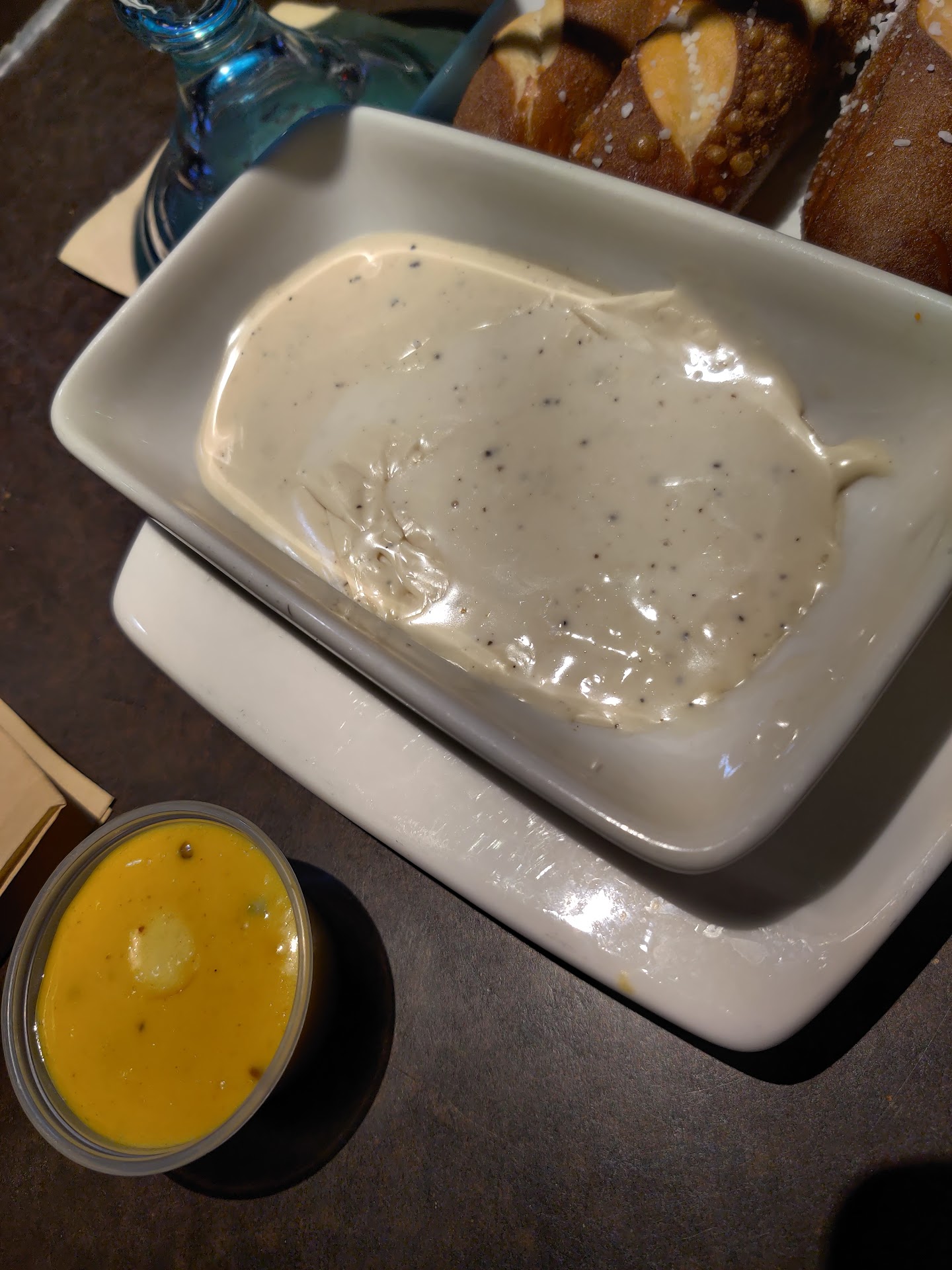 I found out the "cheese dip" is made with parm, hence why it was pretty much just alfredo. However, I'll be honest that most people assume a beer cheese dip is going to be cheddar and that a change of that assumption should have been noted. All in all, disappointing food, disappointing training, and kinda mediocre handling of the aftermath.