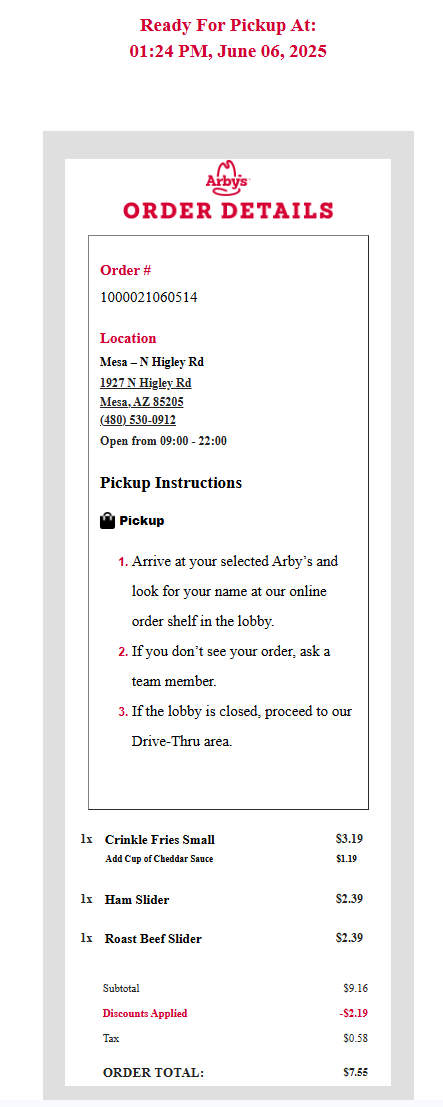 Read moreI used to visit this Arby's weekly and even rated it the best in the area two years ago. Something has changed. I last went in November, and the food tasted off, which made me hesitate to go back. I tried again today, but the food was disappointing—cold meat, cold bun, like it was pre-made and refrigerated. Also, the service has declined. I order through the app, but unlike before when staff greeted me, asked if I needed anything, or said have a nice day, now I don’t even get anything. The place feels unwelcoming. Something needs to be fixed; this location is...