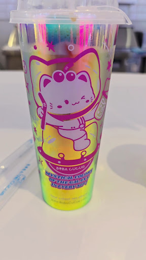 Ā Ā Ā Read moreBeen here twice now and I like it but can't put it as my fav boba place. I'll keep ordering different drinks and see if I can find one I really like since it's the only one near my house. I usually get a Thai milk tea boba and theirs has milk in it according to the menu and I'm used to sweetened condensed milk. It really alters the flavor so that's a bit of a bummer. I have tried 4 other drinks and each one is a bit of an experience which is pretty fun but I can't say I totally liked the flavor of any of them. However, the boba pearls themselves were cooked well. Not too squishy and not hard. I apprecite that. There are nice people that work there and they have a cute vibe in the place so I'll keep trying different ones and just might find a favorite! I do like that they have some more exotic flavors and have a very pretty presentation. That's probably the reason I'm willing to keep trying them. Oh, one last thing, they only have one size drink which is another let down for me. I like to have smaller drinks to not consume so many calories and for my smaller kids. The cups are very cute! I actually dropped one on my seat getting into my car and they are so sturdy that not even a drop got on my interior. Literally any other cup I would have had the most massive mess to clean up. It's the small things haha!
