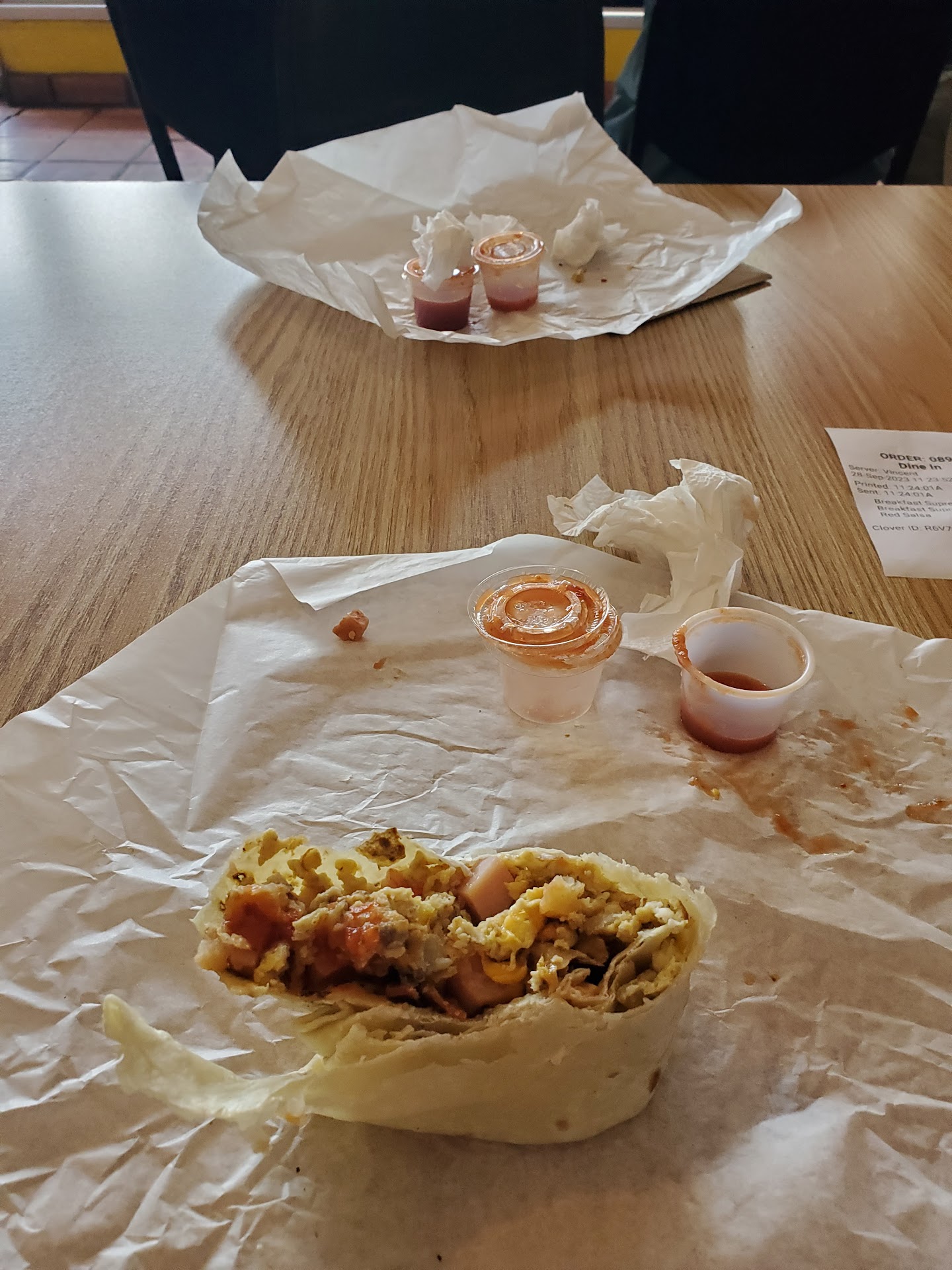 I would like to say how much I appreciate the great people I deal with here on an almost weekly basis. Mainly go in the morning on my day off- they give punch cards for free burritos too which I've used a few times. Yes,the cooking area is open to view. The people who complain about that are idiots. The pots are used daily & seasoned but not dirty. In fact I have never observed anything that wouldn't pass a health inspection, and believe me I know what I'm talking about there. I've worked in food service a long time and keep a A rated work area myself. I see them putting unused product ( shredded lettuce etc) back in their cooler when they're done with it and other things many places neglect to do. My favorite is the green chile. (beef) and egg combo but I have tried both the mild and hot machaca burritos too. I've heard the egg, steak & potato is awesome also.All good but the hot macahaca is too much for my old stomach! The interior is different and colorful but not dirty, I only go in the ladies restroom but have always found it clean and well stocked. For those who are don't like the shopping center, it IS old. There used to be a movie theater ( saw Star Wars there) in the corner and a lot of things have been in an out. Except Burrito Express and KFC. I have never been panhandled there and no one bothers you so not sure what the griping is about. This location does a booming take out business but they are pretty fast from what I observe and has lots of regulars like me who often times have their order remembered when they come in. I like to support local business whenever I can and I have no reservations...