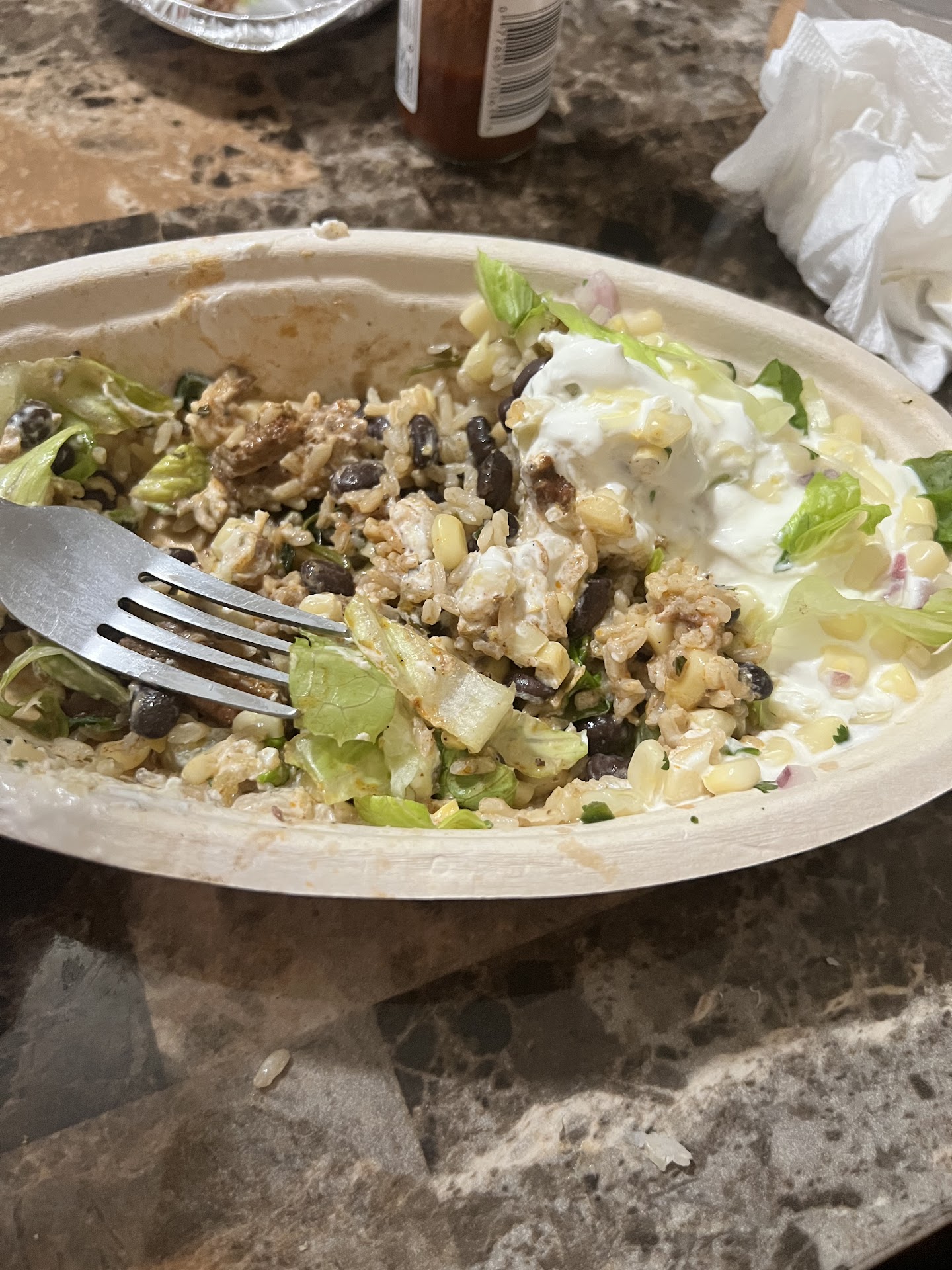 This ill-tempered joke of a manager simply says "It's been a busy night" and goes back to scooping avocados in the back. When we're told (by a line employee, not the manager) that it'll be about 15 minutes for fresh chicken, we aren't offered a refund if we didn't want to wait.