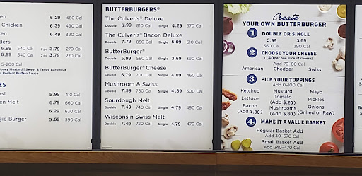 Read moreMe and my wife have been reading reviews for Culver's and had been thinking of trying it for some time now. We went in for the first time tonight. My wife ordered the Reuben with fries and drink and I ordered the Swiss melt. My wife made a comment that any Denny's or Village Inn would have been much more generous with the corned beef and sauerkraut on her Reuben which I agreed with, it looked like the sauerkraut was skimpy. The sandwich was a little bit greasy and seem to be missing the Thousand Island dressing that accompanies a real Reuben. That being said the other eateries spoken of are probably around the same price range. The Swiss melt that I ordered was in the $5 range and was not too bad, had good flavor and was about the same amount of meat and bread you get on a double at in and out. After having our sandwiches we decided to try out their custard that we'd heard about. I told my wife to order the smallest size that they had and we would split it to try. She returned with a pint of vanilla custard for four-fifty and explained to me that she did not see anything on the menu board for smaller sizes. The first thing I noticed about the vanilla custard was small bits of ice in it which is not very good, so I would not get that dessert again. So overall we give it a two and a half to three stars. We will not be in a big hurry to get back there but we may come back to try the fish because people were raving...