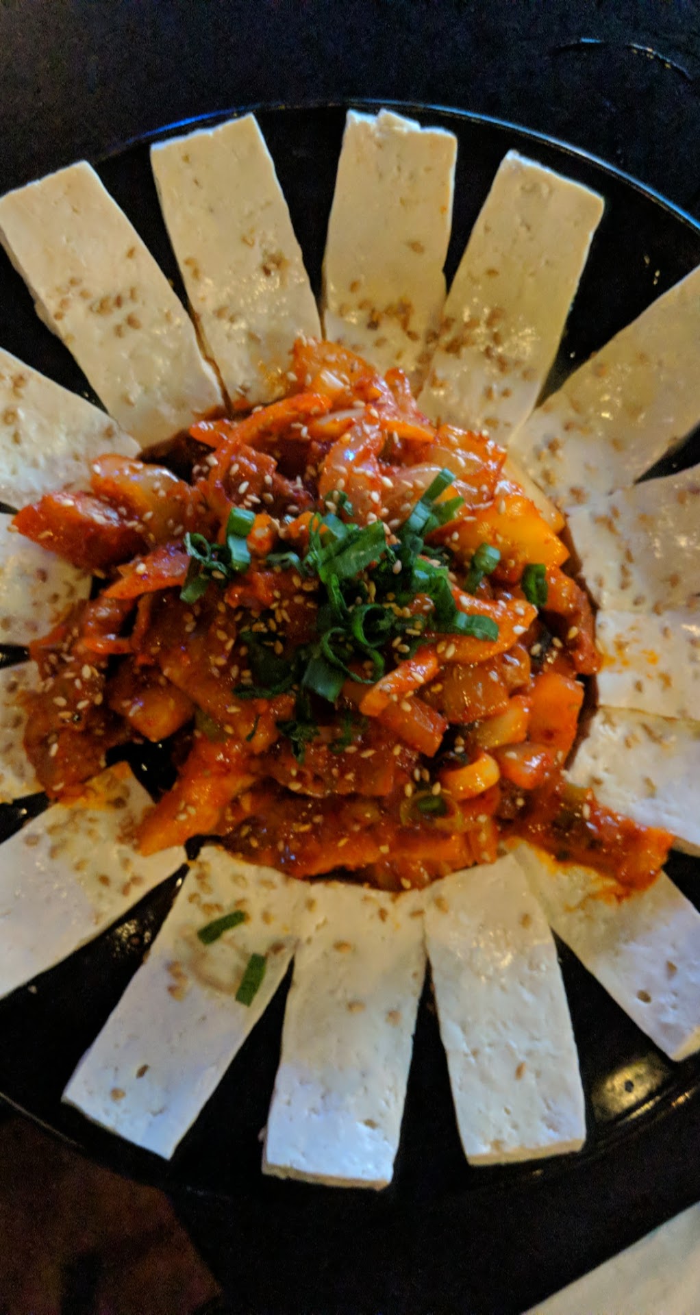 Service was good. The tteokbokki was fine, the flavor didn’t impress me but my partner liked it. The texture of the tteokbokki was great. I also enjoyed the small side of kimchi; it had a good flavor and texture.