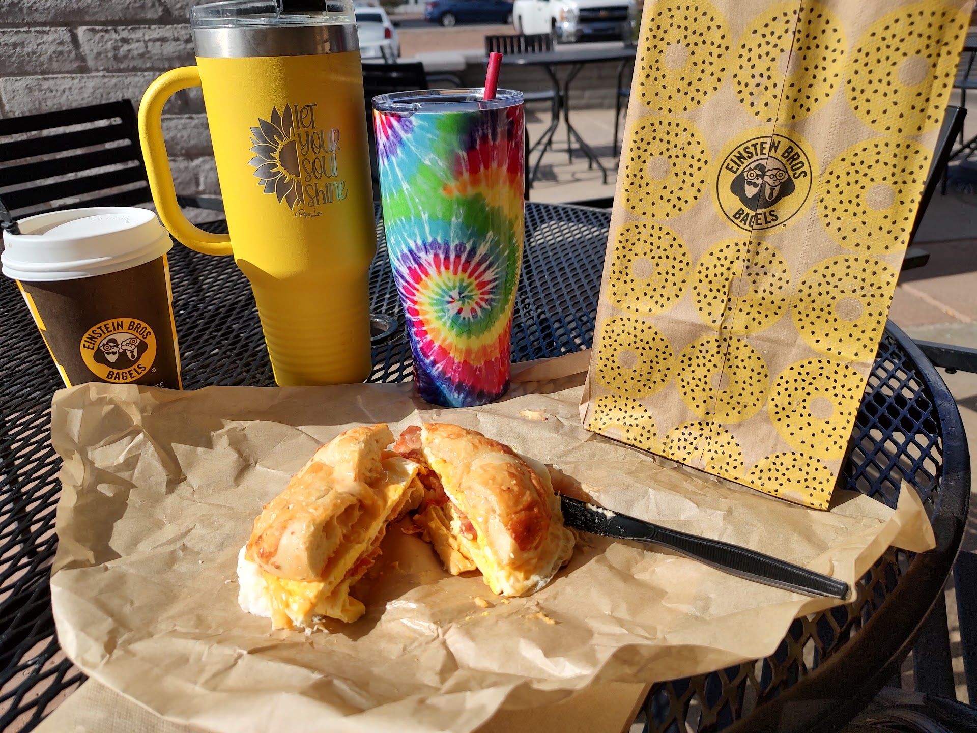 I guess this location feels like they can get away with this poor service because it's the only Einstein's around this area, other locations in the valley are much busier and have much better service. The Tempe and Chandler locations seem to always be busy but somehow they can keep their bagels and other supplies stocked and they get orders out fast. Einstein's definitely needs to fix this location.