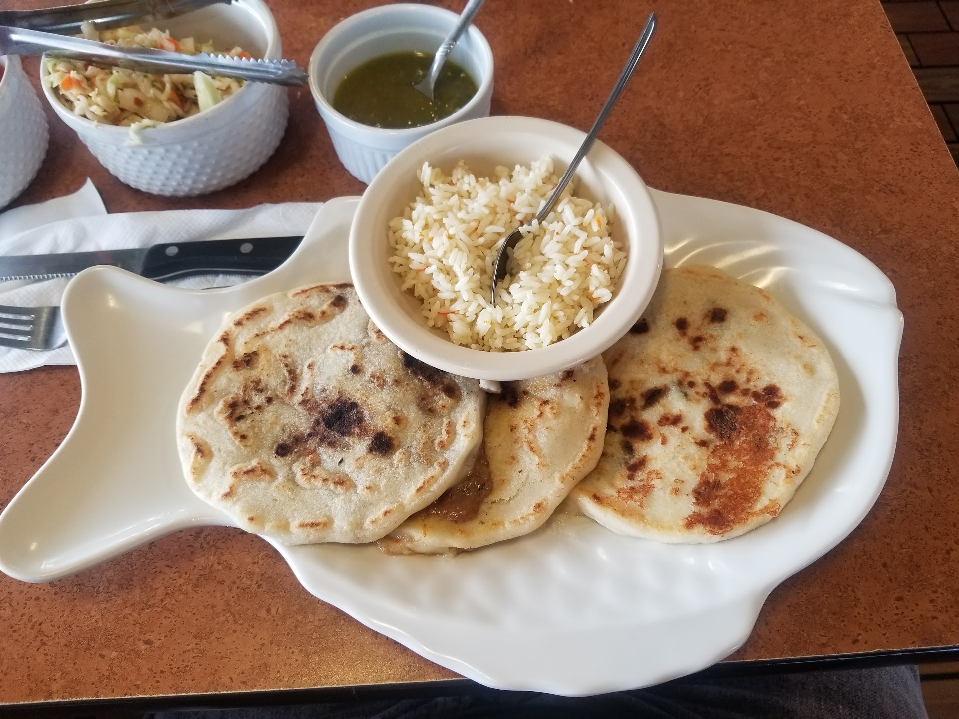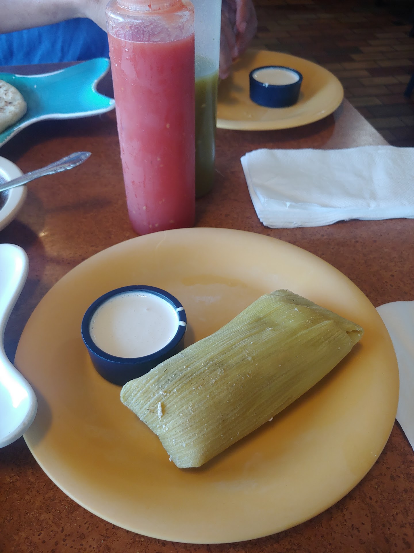 Food is still good... I'm disappointed at my buddy that always takes the orders. I'm a frequent customer I love the pupusas here and the curtido. I just love curtido in general. I can do without the salsa on the side.... anyhow, I placed and order to go and I told him I didn't want the salsa and I would take more curtido. He's response shocked me. He said he knew that I like extra curtido and he would take care of me. He lied!!! I hardly got any curtido and he gave me extra salsa..... not good... now, I met my wife for lunch and she had place the order. I got there a few minutes after the order. I got the sample plate that brings a chipiling tamal. I asked if I can change it to a chicken instead. My brotha told me no.... I asked why and he said it was too late. I just thought to my self that this dude was joking. I know the tamales are already made. I take it is a difficult thing to change pre made food.... so much for good customer service... what...