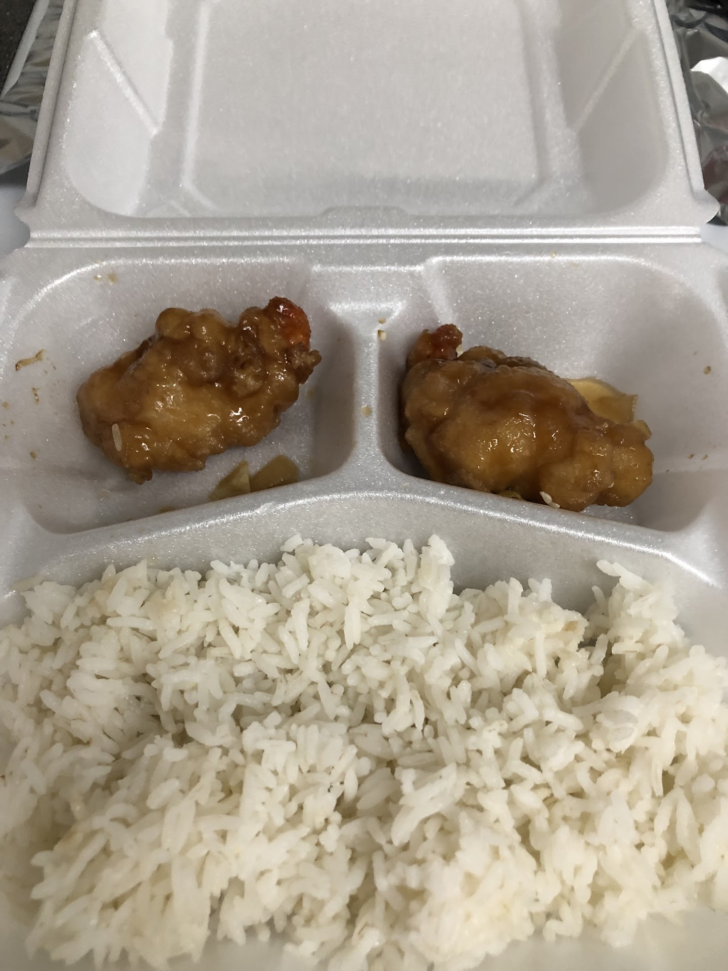 I wish I could say that the rest of my meal was delicious. However, this was not the case. The chicken with broccoli came out in a dark brown soupy sauce that I was not expecting. From what I remember for years, the chicken and broccoli came in a white and clear sauce. The sauce was very heavy, too sweet, and did not have any flavor. Eating each bite made me so sad because I remember when this used to taste good, and now it does not. The servers that came by did not seem to really care that I did not like the food.