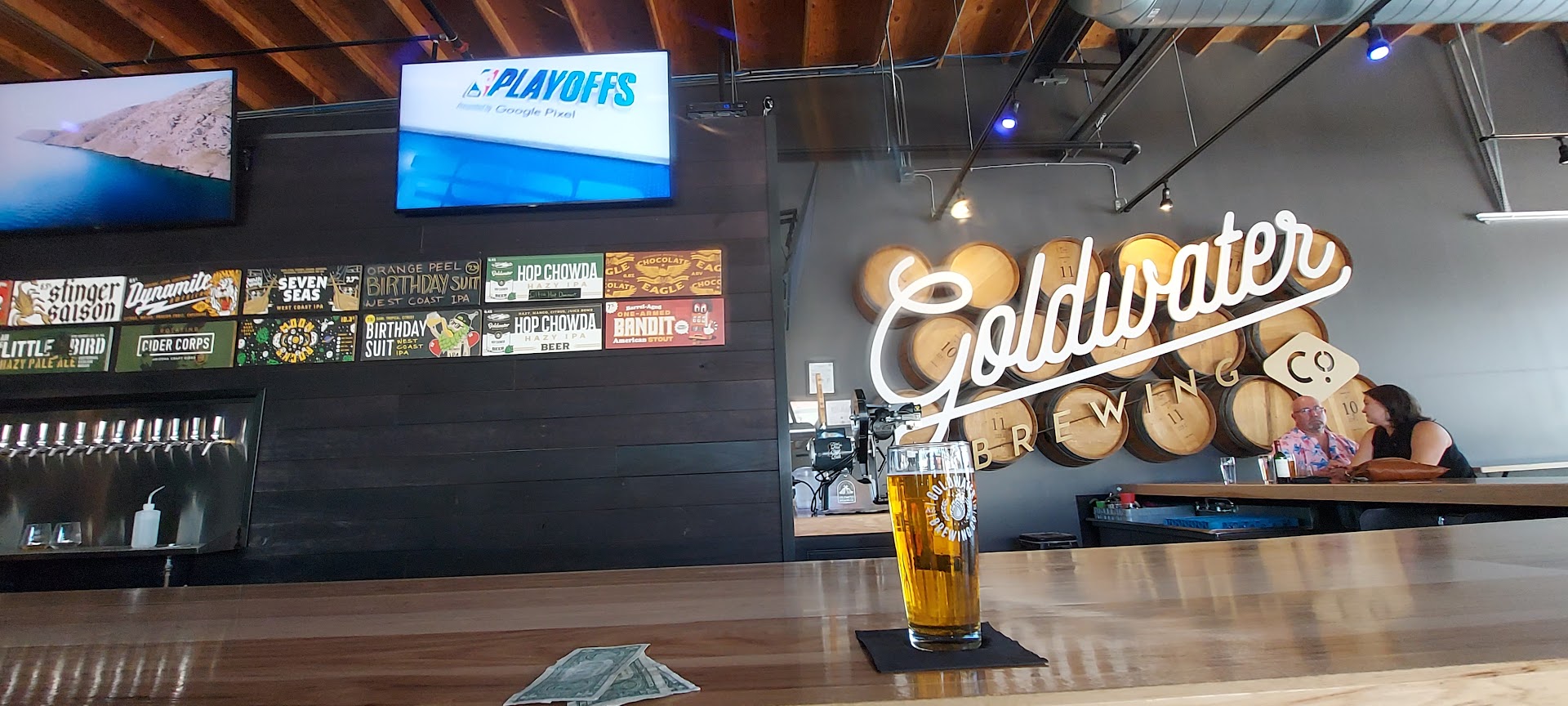 Went down to see a sun's playoff game which everyone was watching, trying to pay attention, but no volume, we listened to some form of regae in the background. It's the playoffs. Let's get hyped, get excited about this. Drink more beer,, order food. The seats? hard metal stools. Won't wear out, but they also are not comfortable. Not inviting, & just again made for a cold overall experience in a place with 4 walls. The beers? Good, plenty of variety, lots on tap but at $7 a small draft I coulda stayed home, been comfortable & drank a 12pack on what it cost for 2. No food, no snacks, no ambiance.