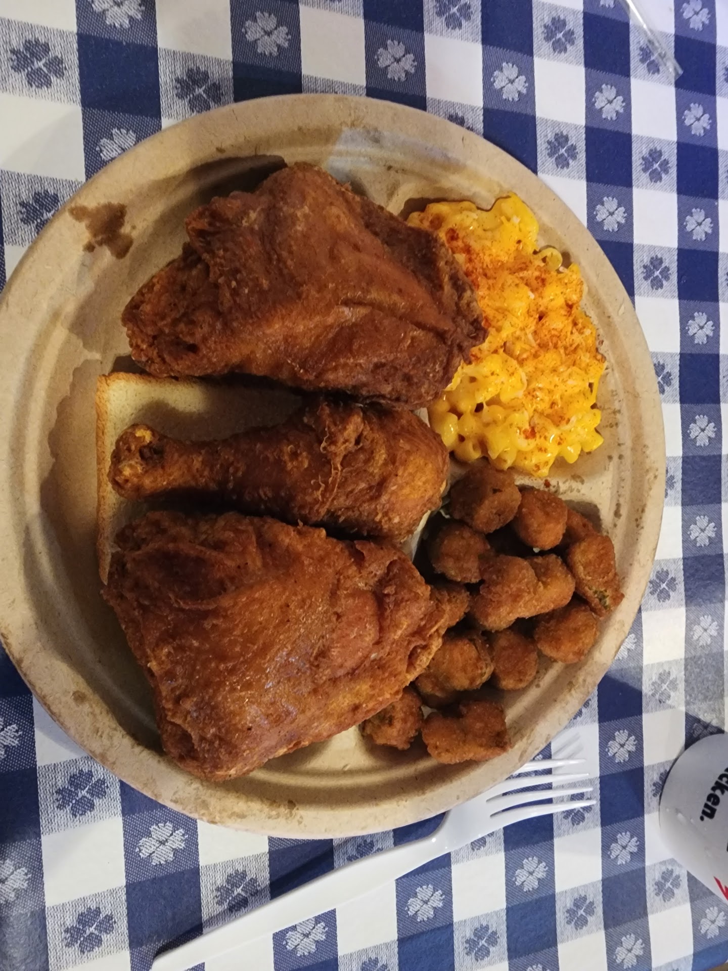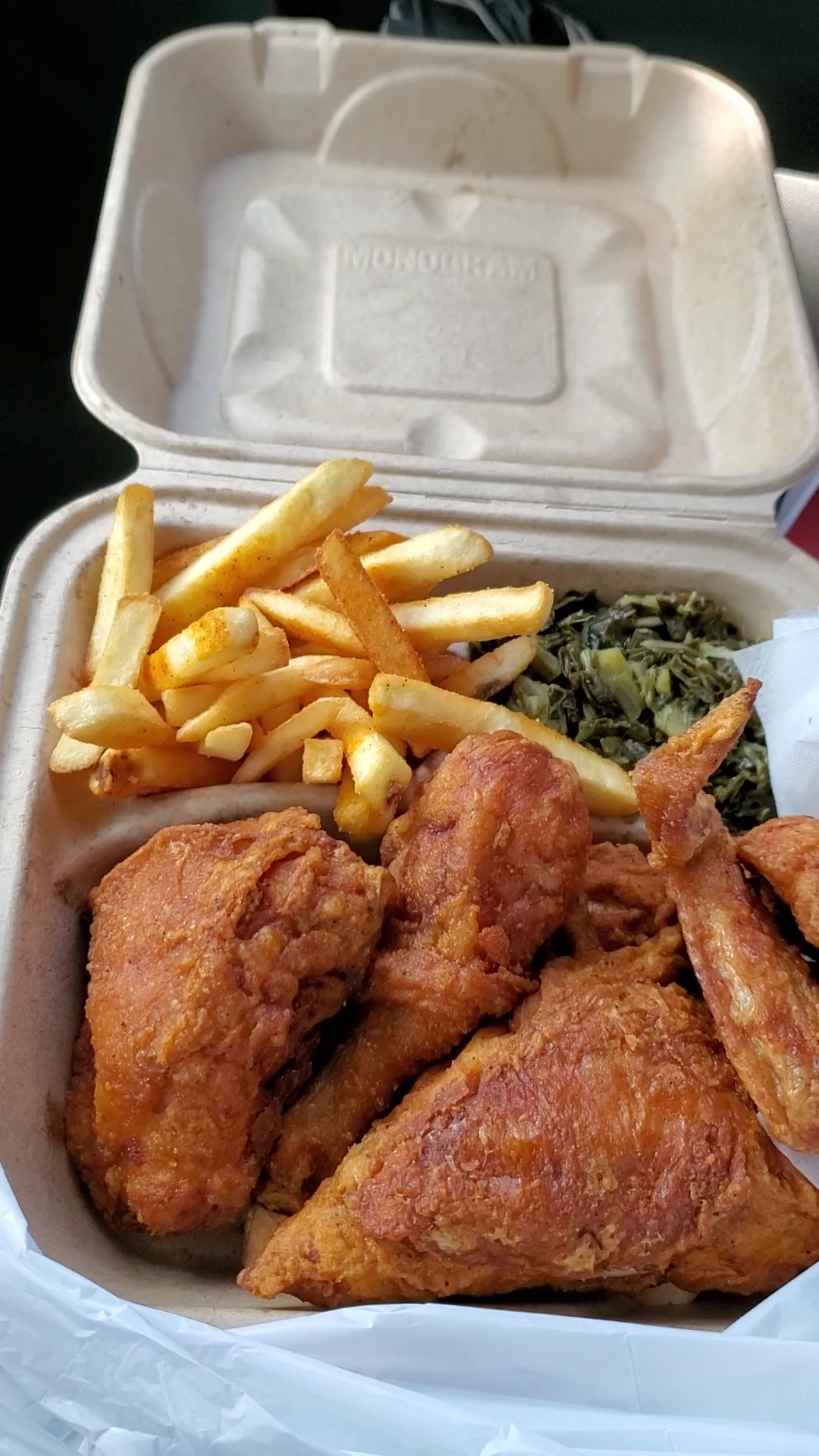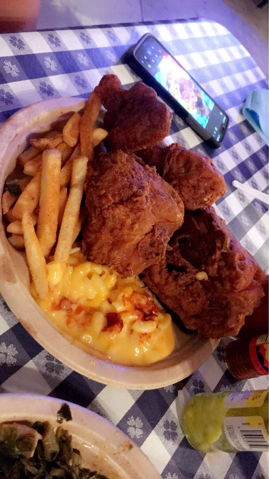 Read moreI was on a search for good fried chicken.. I found this place and let me tell you this place is DELICIOUS! We went in earlier tonight (Sunday Labor Day weekend) upon arriving it was busy. There were only two tables open and people coming and going with takeout orders so I already knew it was going to be good. They definitely exceeded my expectations. Having a mother from Tennessee and tasting food that literally took me back to my childhood was nothing short of amazing🤩. We tried almost everything on the menu because why not?? Everything was good but our favorites were the chicken of course…the fried okra, the greens and the potato salad (which I’m pretty sure is my mom’s recipe 😉) the pecan pie and coconut pie. Let me describe the chicken for you because this is why you came. Super crispy, crunchy and juicy while not being greasy at all somehow (magic?) and seasoned to perfection with a slight kick. It takes a little time for the chicken because it’s obviously made FRESH to order..be patient because it is worth every minute.. There was little to no breading which is something I definitely prefer. My boyfriend was actually saying mmmmmm after every bite! It’s so good! You absolutely cannot miss this place. Our server was friendly and attentive. I do not know her name but she has dark hair and was wearing a red shirt tonight and glasses maybe? Thank you sweetheart for the...
