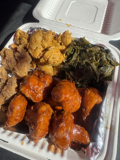 We first tried the plate with cauliflower (CauliFiya) lobster mac, and greens! It was so good so good, we went back for 3 additional sides. My husband purchased first and then we tried and I went back for the sides. Service was fast, food was somewhat hot and the owners were friendly. The hot wings were very sweet hot wings so if you like sweet then you’ll like the wings (we recommend getting the sauce on the side).