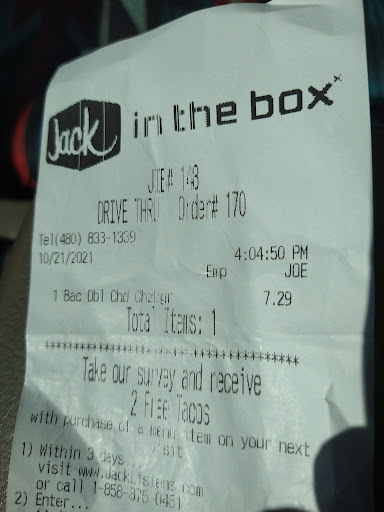 I'm just over going there and having an issue each time. I never make a fuss because I try to be understanding but it's to the point that I have to come to the realization that they more than likely have bad employees who don't want to work or they have bad managers who can't manage a store. Either way jack in the box loses money one...