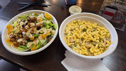 Have you ever walked in to a restaurant, been hit by a smell and immediately started salivating? Because that's what happened to me today- My partner and I have been wanting a good salad restaurant, especially because for whatever reason I kept getting food poisoning from salad and go. He found this restaurant, and we decided to head over and see what it was like. The overwhelming and absolutely mouthwatering scent of teriyaki chicken cooking on a stove top hit me like a truck, and the owner explained it's like a secret menu item- teriyaki chicken with the mandarin salad? DELICIOUS. EVERY aspect, each ingredient is clearly there to elevate the other flavors. The sauce added just the right amount of creaminess and smooth, almost sweet flavors that matched with the orange. The celery root (which he explained is cut in a specific way to reduce bitterness) popped and added a beautiful accent flavor I can't quite describe to the leafy greens, which were all fresh and crisp, no wilting anywhere to be seen. Their Green chile Mac? ALSO AMAZING, they don't have an overwhelming cheese sauce, noodles perfectly done, cojita cheese that's sprinkled on just so to counteract some of the spice while still preserving the gorgeous flavors that pop through?