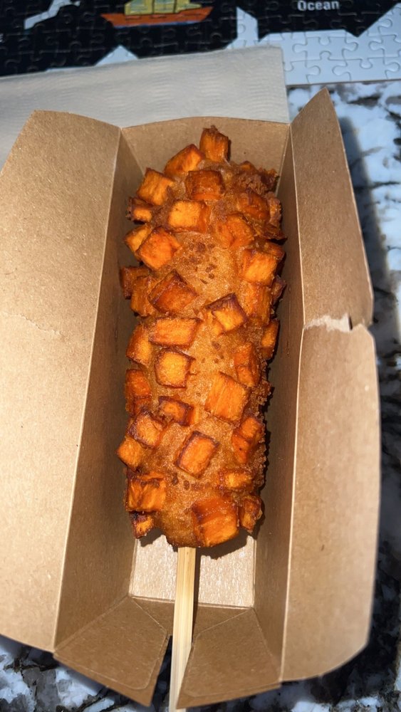 Read moreWhy isn't this place more popular? I kind of want to gatekeep it because I don't want all the two hands girlies to flock over there and ruin the short wait time. Yet again this place needs more business because it truly is the superior Korean corn dog establishment. The batter was thick and crispy, the cheese pulls were 10/10, and the selection was chef's kiss. I personally got the sweet potato dog with half cheese and half dog and it was the best Korean corn dog I've ever had. Better than two hands down the road.