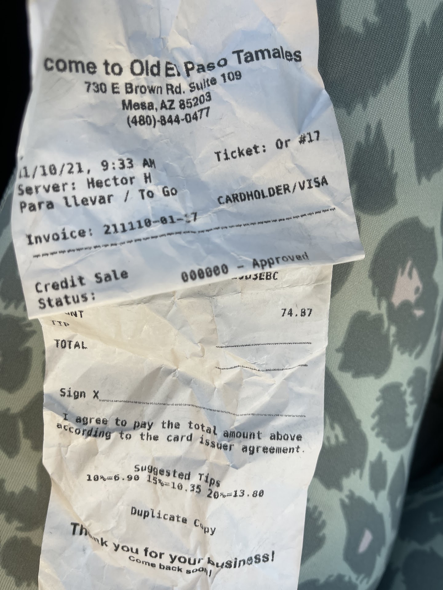 Read moreI have never experienced the worst customer service in a Mexican orientated restaurant I was charge $75 for three dozen of tamales that were about 4 inches long and maybe an 1 inch wide they had no meat no flavor completely ripped off called more than three times spoke to somebody with the name of Carla she always denies the owner or the manager and says that they can’t do anything about how extremely little these tamales were given to us on this last purchase we made with old El Paso tamales in Mesa Arizona. These tamales used to be about three sizes bigger their size and with the amount being charge it is a complete rip off and I was very disgusted with the poor follow-through that the owner or supervisor has done nothing. I live more than one hour away so being said that two hours just to go get these tamales and when I said if they can please do some thing because we were completely ripped off with such non-flavored tamales with such small size and as I’m complaining and keep calling they’re asking for me to drive back and bring the Tomales three days later how the heck...
