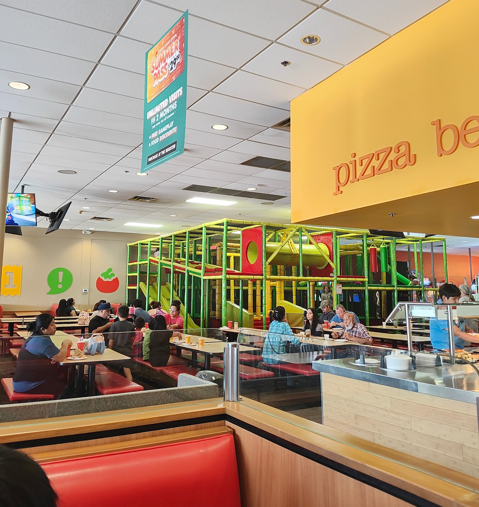 Read moreHot as hell in there, Temp was around 90 degrees, probably hotter back by the games area. Pizza was ok. But in the beginning of our visit there past Saturday we are at our grandson's birthday party there. I ordered a pitcher of beer. They requested two forms of ID!!! I'm kind of confused by this but I showed them my license and my costco card with my pic on it. They said NO SIR, we need to see an ID from someone else you will be drinking with!!! I'm like REALLY?? So I get my father in law who is standing beside me to show his ID along with mine. I then asked for 4 glasses and they said NOPE, we only give two glasses with each pitcher of beer. Hmmmm, confused again. I walk back to our seats with my beer. I'm thinking to myself, "so they want two ID's but I guess they only want two people to split a pitcher of beer instead of 4 people drinking out of it!!! Hmmmmmm, scratching my head!! So then, my father in law orders another pitcher of beer, he used the same ID that he used with my pitcher of beer that I just purchased. He was next in line and used the same ID!!! We then had to have Mom head up to the counter and show her ID as well. At this point I'm shaking my head in amazement that two 65-72 yr olds had to show their ID's to order a pitcher of beer!!! Are there some like old looking 21 yr olds out there these days? Oh, they only got two glasses as well, so we ended up asking for extra paper soda cups to go back to the table to drink our beer with. These kinds of things make my head want to explode!! What the hell is going on...