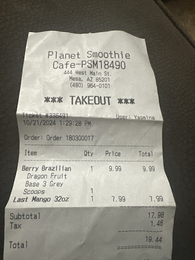I decided to take time on my lunch today and spend my gas to grab a quick smoothie, and I only had a $50.00 bill with me. The young worker told me they don't take $50, and as a consistent paying customer over the last couple months i expected better customer service. I usually pay with my debit card, but I didn't have it today. I was coming to grab two smoothies for me and my sister, and I and was told, rudely, by the manager that I could have a free soda instead. Gee thanks (i dont drink soda for over 15 years, was a major slap in the face, and to also be offered a soda at a SMOOTHIE shop too). The manager said they never take $50.00 bills and asked was there anything else she could do for me...The manager's attitude alone confirmed that I will never come back to this location and give it my money simply off principle because of her bad attitude and bad customer service. Way too many smoothie spots to choose...