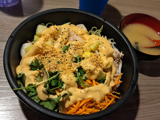 Read moreIt was empty when we arrived. It seems pretty much everyone that eats from here orders take out. Which it's a shame. It could also just be the time we stopped in at. Service was great, and everything was clean. Seats seem to be basically new or at least well maintained. Now on to the food. We ordered edemame and pork gyoza. The edemame was good and the gyoza was great. The dipping sauce might be a bit salty for some but for me it was perfect. I had a Poke bowl with salmon, blue fin and yellowtail, the sauce I order with it was kiwi sauce. I gambled, since I've never tried such a sauce before and it paid off. It was really really good. I'd definitely try it again with different proteins. It came with miso soup and that was really good. Probably in my top 5. My wife go the spicy miso ramen and that was amazing. Very flavorful and the broth was made perfectly. It wasn't "dirty" and the pork was cooked perfectly. Our server was very friendly and helpful. If I could rate it...