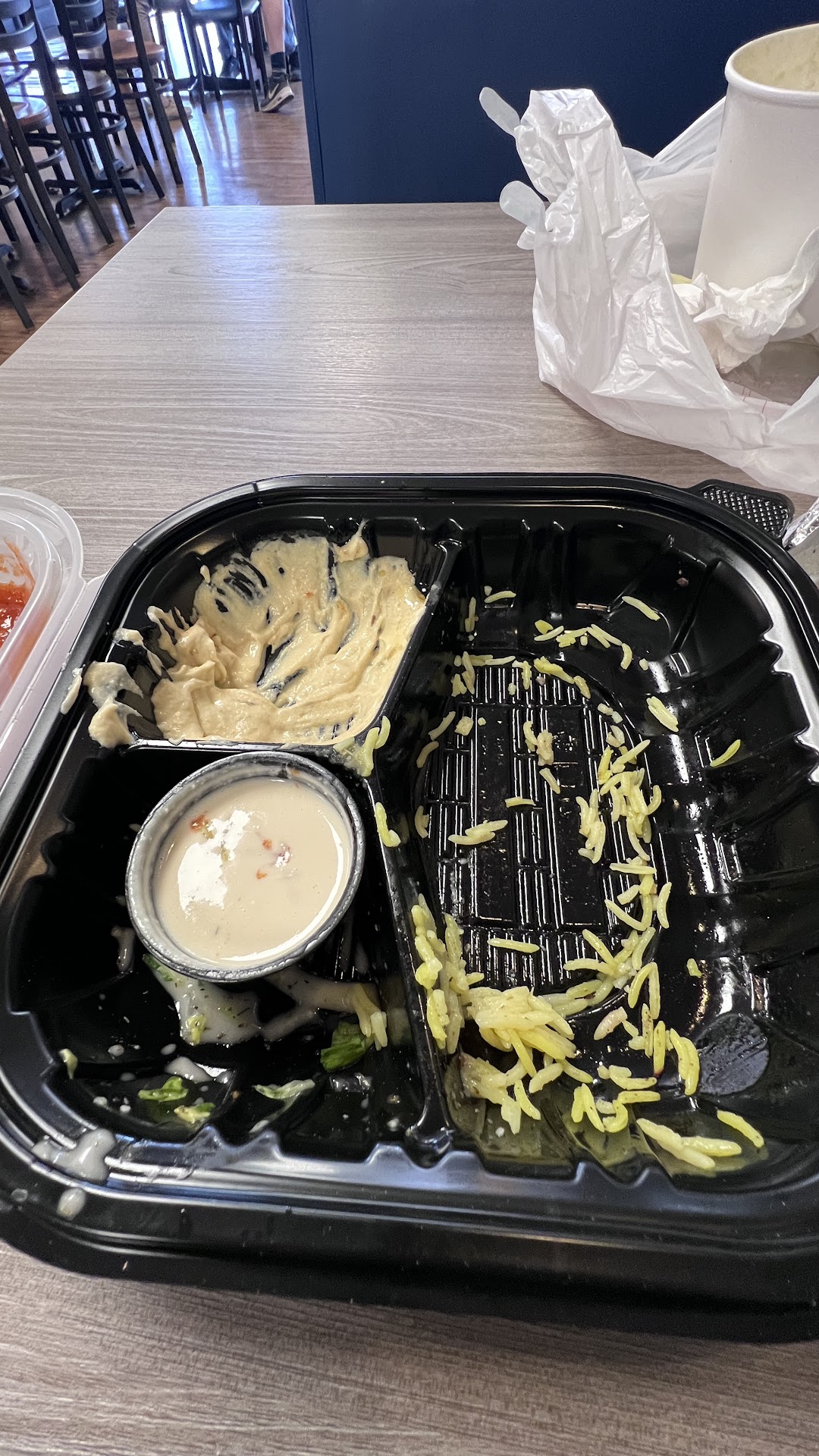 At that point, we didn’t care to eat anything else. We never tried the falafel sandwich because we were very upset about the experience with the chicken plate. We didn’t take our food home. We left everything on the table.