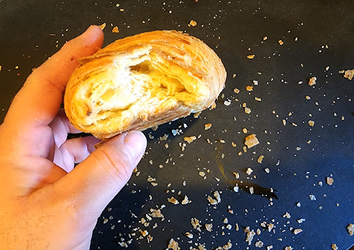 They have somehow managed to mix sourdough into a flakey croissant. Starting with the texture and appearance, this would be an amazingly well baked croissant. It is light crispy and flakey on the outside and soft and airy on the inside. Then you add to it the amazing meadily of the buttery savory of a traditional croissant with the tang of a sourdough, and you have the most wonderfully flavored croissant of all time.