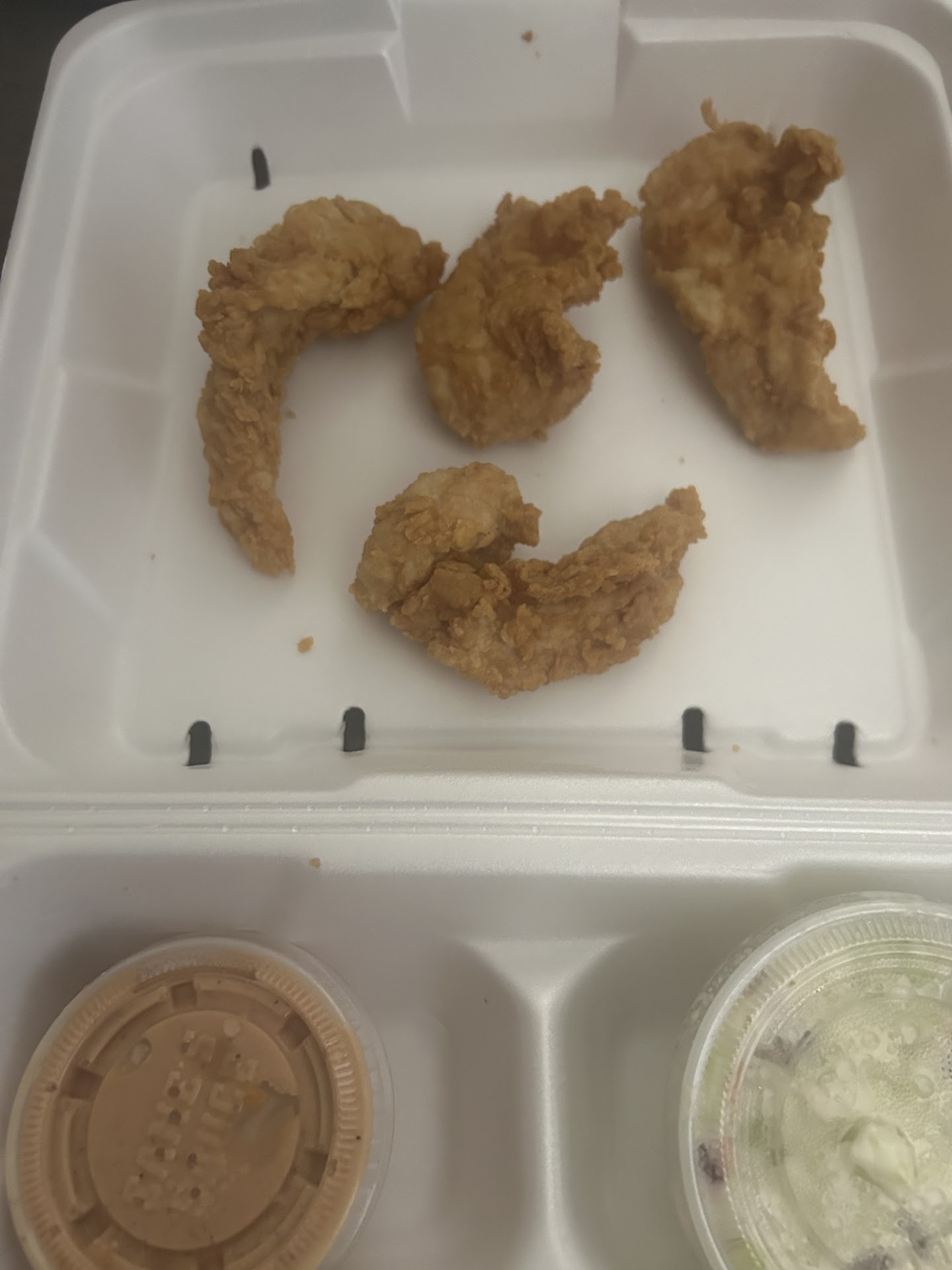 The chicken was good as it always is. I don't understand why you don't cook the fries longer. They always feel soggy not crispy at all. I wish you would...