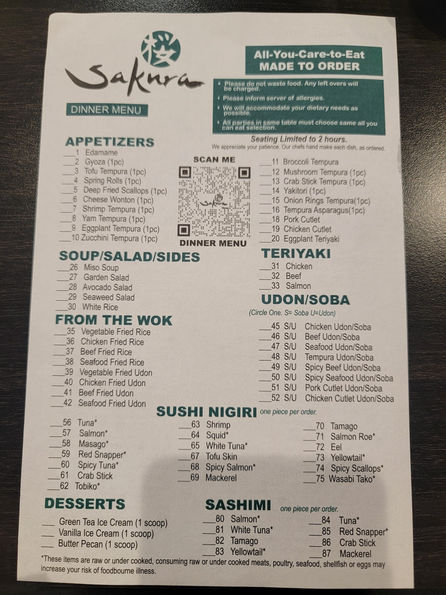 Edit: Their dinner price has increased to $29.99. Sakura Sushi is my favorite place to take friends and family. The menu has a broad selection of great food to choose from. I'm also thankful that they have a variety of cooked options for my few friends who aren't as confident in eating raw fish as I am. The sushi is very good quality. The servers are quick and friendly. They do a good job of keeping the place clean and orderly. I know that I'll have an excellent experience every time I visit. I love the artwork and decor as well.