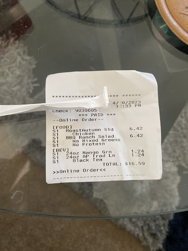 Read moreI've been to this location about 5 times since they opened. 1st and 2nd visit was great. 3rd visit, they forgot the avocado on my BBQ Ranch chicken salad. 4th visit, they forgot the egg on my son's Cobb salad. Today... my daughter's BBQ ranch chicken was NO Pico extra corn. She got EXTRA Pico, NO CORN! The first 2 mistakes I didn't go back because I was already home. This time I was across the street and went back. I always order a Cobb, or BBQ Ranch chicken salad, and then customize it, to my liking. Today, the drive thru employee suggested we order a build your own. Then the employee at the walk up window who re-made my daughter's salad also suggested it. Stating it's less complicated. NEWS FLASH! It doesn't matter which way I order a salad, it should be made correctly EVERY TIME! The ingredients left out were base ingredients. It's called paying attention to detail. This coming from a Food/Customer service manager myself, of over 20 years! I feel better training is needed to improve...