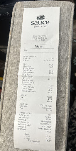 Read moreFood is good but the last few times we have been disappointed with the service. Last night was the last straw. We were celebrating our grandson’s birthday and he ordered a pepperoni pizza. I ordered a panini and my wife ordered a specialty pizza. My wife was served first and my panini came out almost 10 minutes later. No pepperoni pizza. After another 20 minutes I asked someone about our order. He said it was not entered into the computer; I asked to see the receipt and it the counter person did not enter the pepperoni pizza. I asked to talk to the manager and explained we came in to celebrate a birthday and have a fun time. Now my grandson is hungry and my wife and I are pretty upset for the long wait. He told me that I should have seen the error on the screen. I told him its not my job to check the screen. I wondered why the counter people aren’t train to confirm the order, or ask the customer to check the screen, or provide a receipt (no receipt was given to me and I was not asked if I wanted a receipt). The manager never apologized for the mistake but blamed me for the pizza not being ordered. He offered to sell us a pizza at but to wait another 20 minutes; this was not acceptable to me. We left the restaurant upset and angry. There are at least two dozen restaurants in the immediate area so we don’t expect to go back to Sauce in the...
